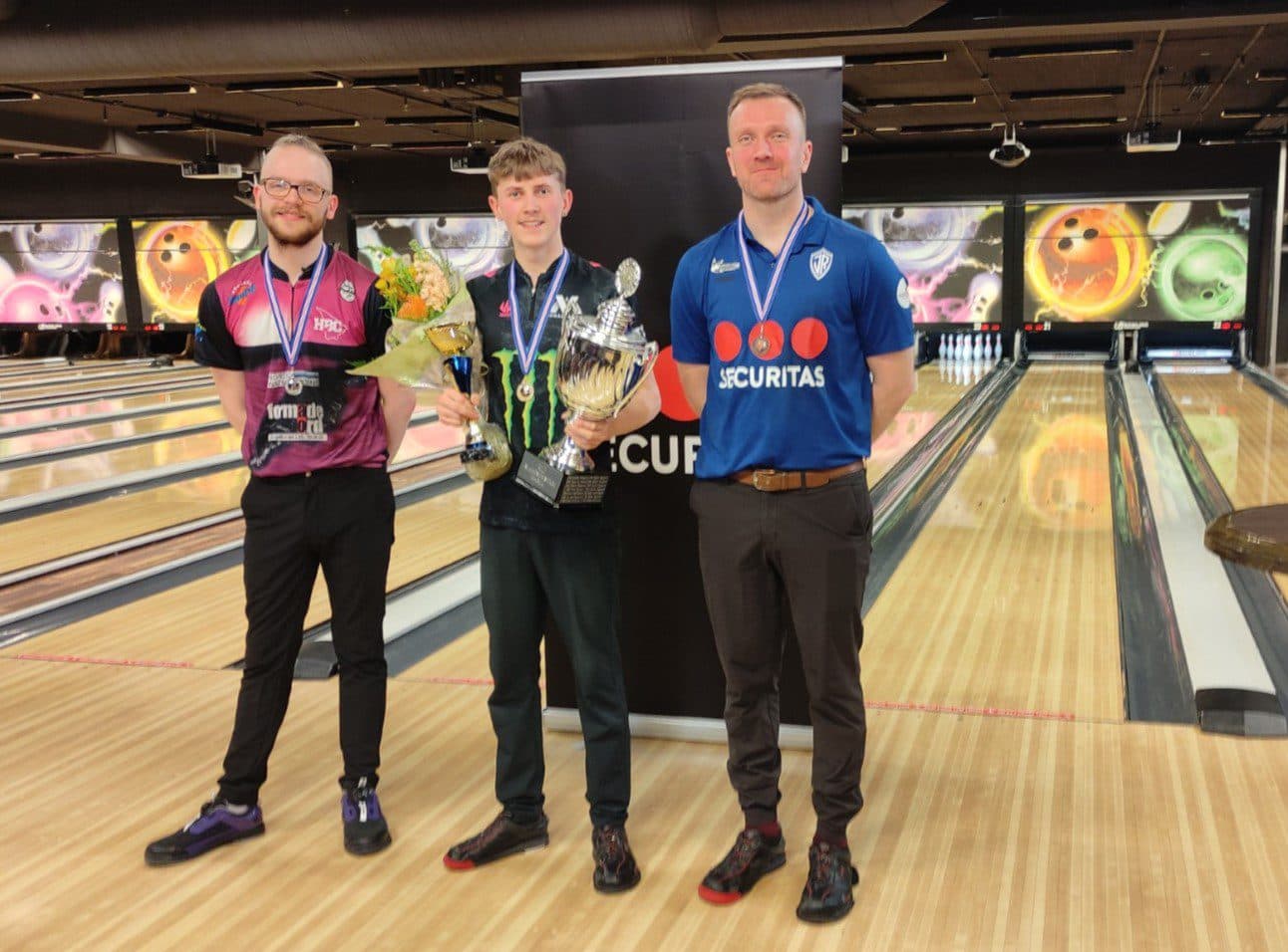 Þrír efstu á Íslandsmóti einstaklinga í keilu. F.v. Ísak Birgir Sævarsson, Mikael Aron Vilhlemsson og Gunnar Þór Ásgeirsson. Ljósm. klí.