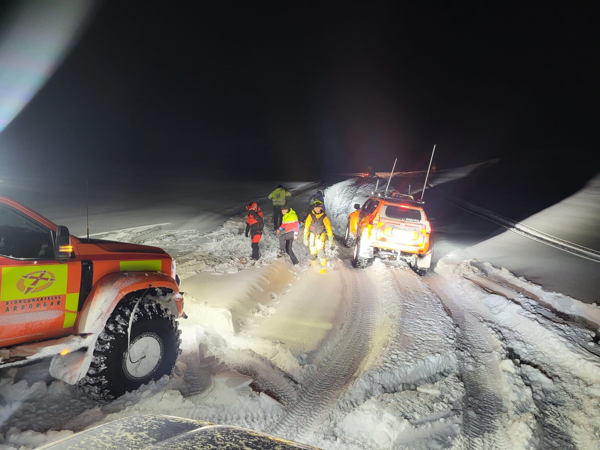Um klukkan eitt í nótt bárust Neyðarlínunni neyðarboð frá Langjökli, skammt frá Klakki. Við nánari eftirgrennslan voru þar tveir menn á ferð á vélsleðum og höfðu þeir lent í talsverðri festu. Þeir voru vel búnir og engin hætta var á ferðum en óskuðu þeir aðstoðar björgunarsveita við að losa sleða sína. Björgunarsveitir af Suðurlandi voru boðaðar út og þá voru björgunarsveitir í Borgarfirði beðnar um að fara inn á Kaldadal. Þar með væru bjargir á leið á staðinn bæði að vestan og sunnan. Ferð björgunarsveita gekk ágætlega inn að jökli og klukkan þrjú í nótt komu fyrstu björgunarmenn, sem voru á vélsleðum, á vettvang. Vel gekk að aðstoða við að losa föstu sleðana og þáðu sleðamennirnir fylgd til byggða, þar sem bensínbirgðir voru orðnar af skornum skammti. Björgunarsveitir voru svo að skila sér til baka í bækistöðvar á sjöunda tímanum í morgun.