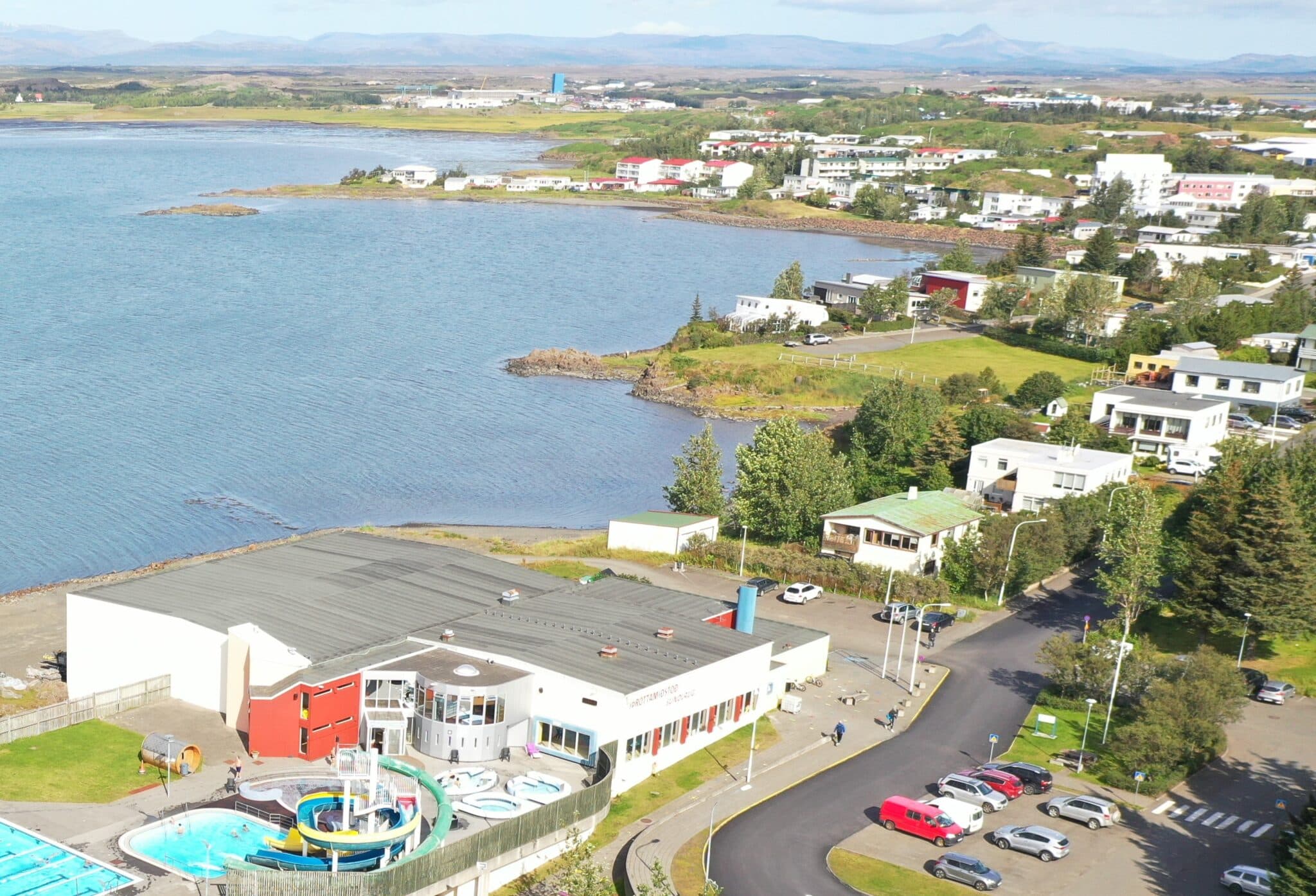 Nýbygging við íþróttahúsið verður norðan við það þar sem nú er bílastæði og þá verður húsið við Þorsteinsgötu 5 rifið. Ljósm. mm
