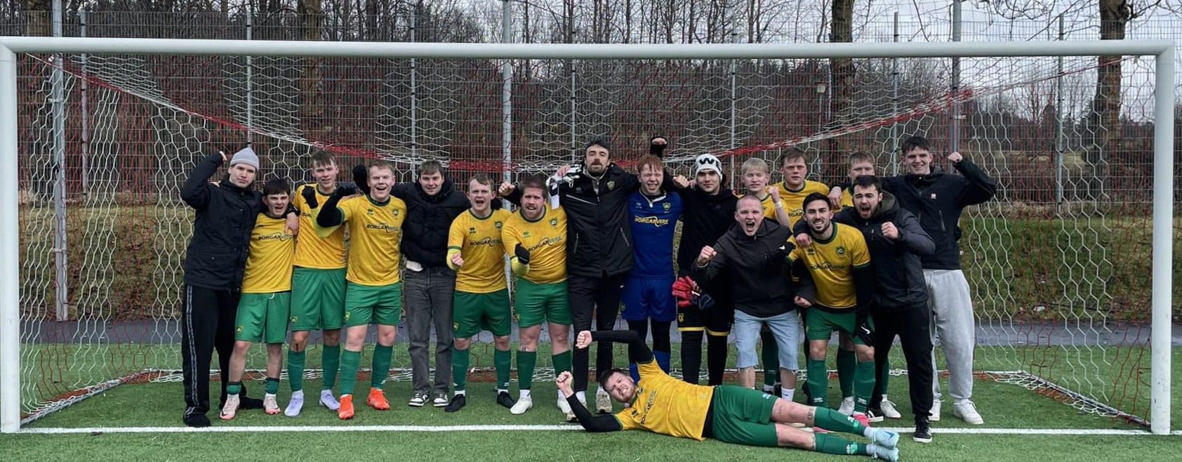 Leikmenn Skallagríms voru kampakátir eftir sigurinn gegn Hamri á sunnudag. Ljósm. Skallagrímur fótbolti.