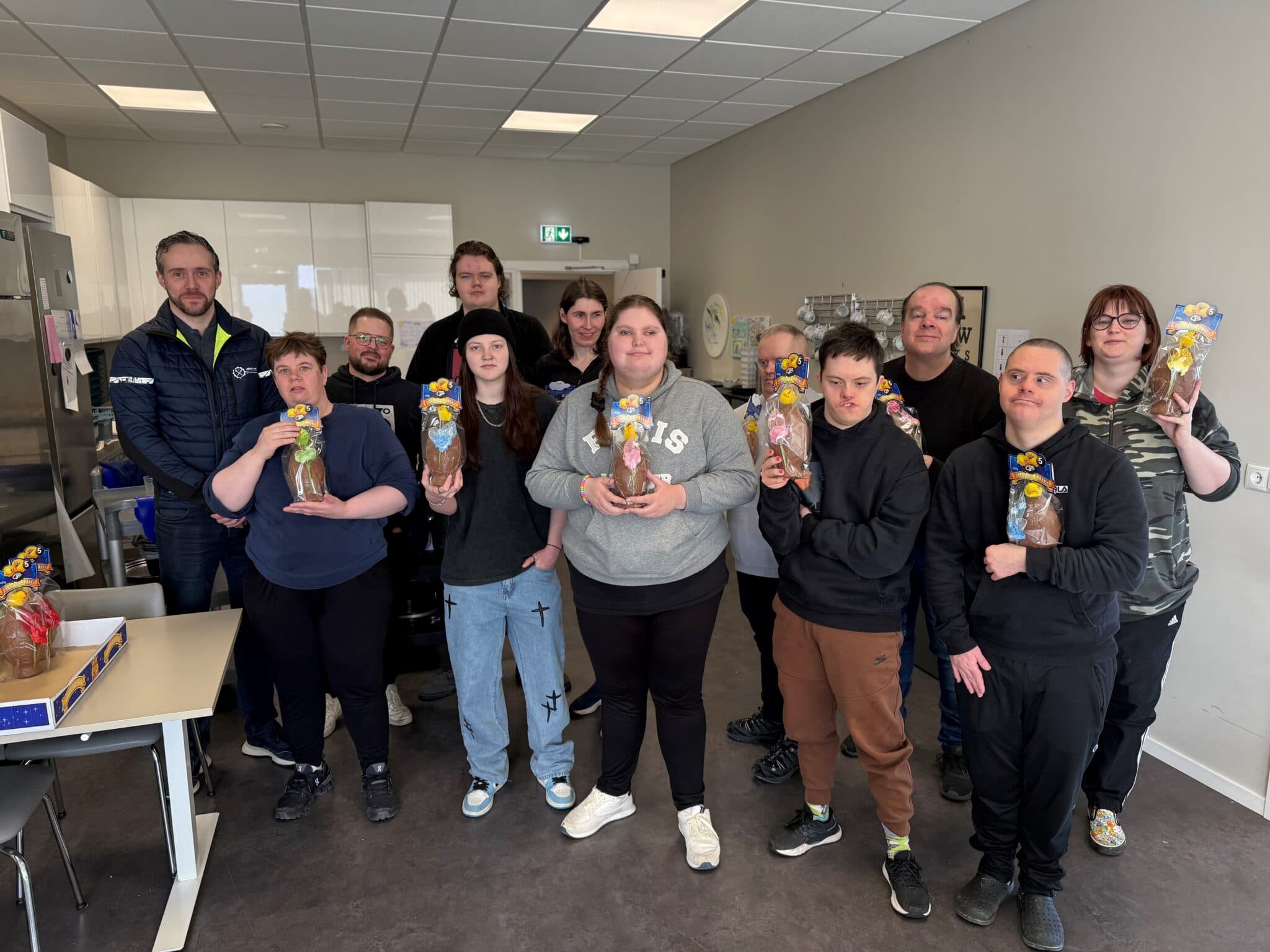 Jörfi ehf. Pípu- og véltækniþjónusta við Nesflóa 1 á Akranesi hóf eins og kunnugt er starfsemi á Akranesi fyrr á þessu ári. Að sögn Óttars Þórs Ágústssonar framkvæmdastjóra hefur reksturinn gengið vel það sem af er og verkefnastaða er mjög góð. Fyrirtækið ákvað nú í aðdraganda páska að láta gott af sér leiða. Mættu eigendur fyrirtækisins í Fjöliðjuna, vinnu- og hæfingarstað og gáfu öllu starfsfólki þar myndarleg páskaegg. Þetta gerir Jörfi í samstarfi við Ísrör ehf. Blaðamaður Skessuhorns leit við þegar hluti hópsins fékk eggin sín afhent. Var almenn ánægja með þessa fallegu gjöf en þetta mun vera í fyrsta skipti sem starfsfólki Fjöliðjunnar eru gefin páskaegg.