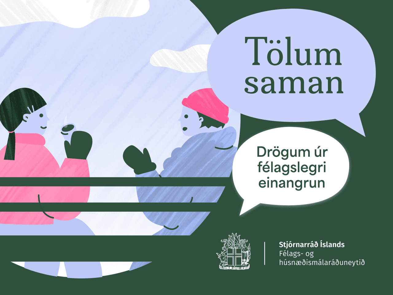 Vitundarvakning um félagslega einangrun stendur nú yfir og hafa nokkrir tengiráðgjafar hafið störf víðsvegar um landið. Það er félags- og húsnæðismálaráðuneytið sem stendur fyrir átaksverkefni gegn félagslegri einangrun undir yfirskriftinni; Tölum saman. Með henni vilja stjórnvöld vekja athygli almennings á því hve alvarleg félagsleg einangrun er og hvernig við getum öll verið hluti af lausninni. Ýmis ráð eru til að rjúfa félagslega einangrun, hvort sem er fyrir þau sem eru félagslega einangruð eða fólkið í kringum þau – og hefur eftirspurn verið mikil eftir fræðsluefninu sem nálgast má á island.is/felagsleg-einangrun.