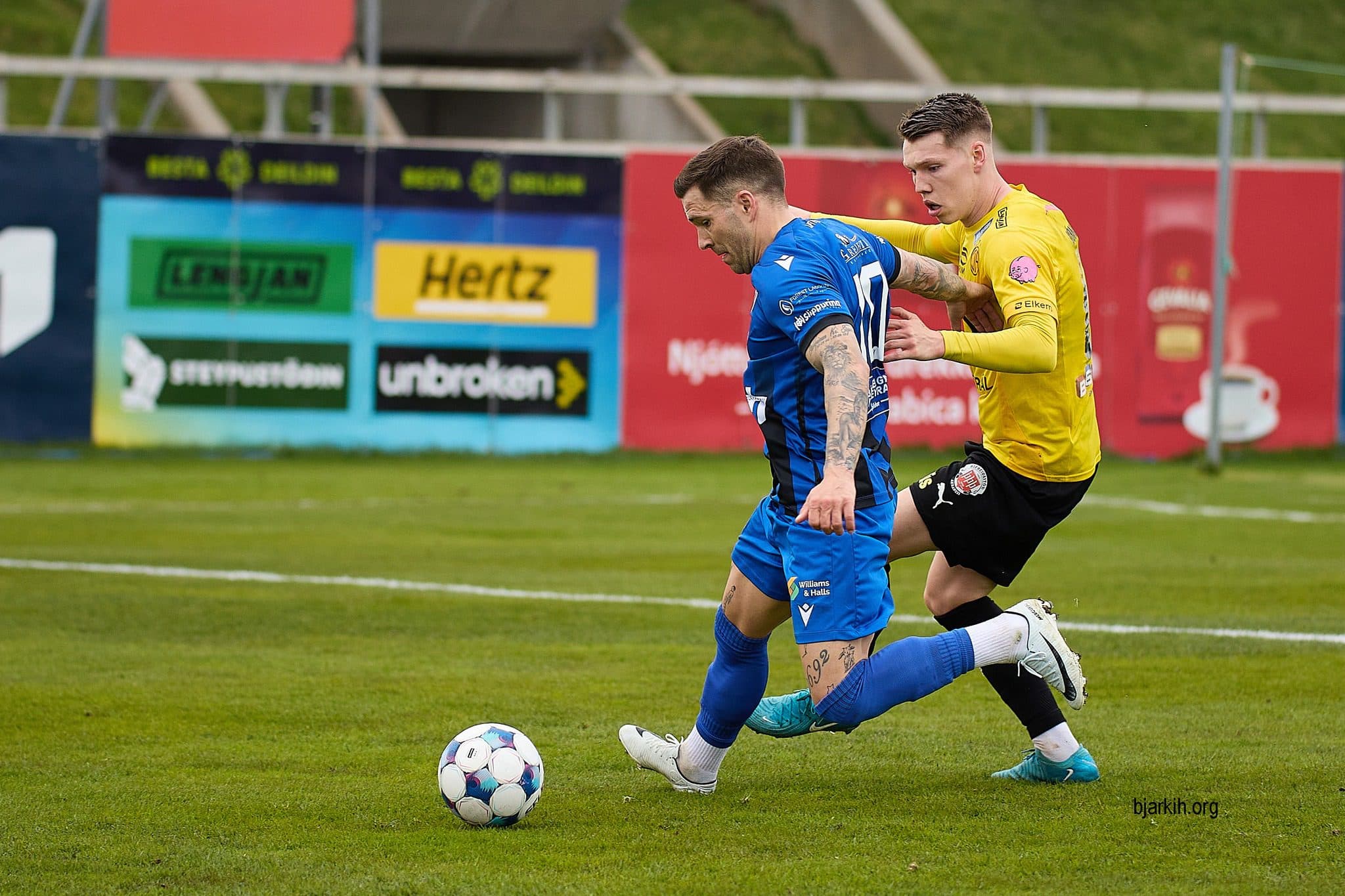 ÍA og KA mættust í fimmtu umferð Bestu deildar karla í knattspyrnu í gær og var viðureignin á Elkem vellinum á Akranesi við ágætis aðstæður. Jón Þór Hauksson þjálfari ÍA gerði tvær breytingar á liði sínu frá skellinum gegn KR. Guðfinnur Þór Leósson og Marko Vardic komu inn í liðið en Johannes Vall og Rúnar Már Sigurjónsson settust á bekkinn. Liðin voru jöfn að stigum fyrir leik í neðri hlutanum með aðeins þrjú stig og Skagamenn með þrjú töp í röð á bakinu.