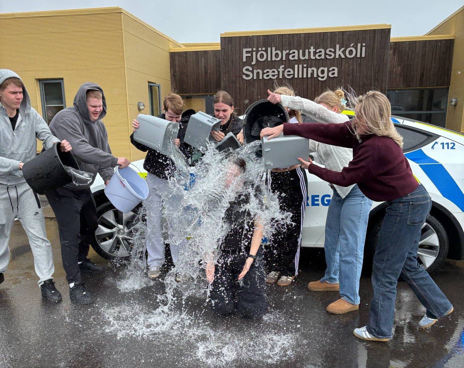 Lögreglan á Vesturlandi fékk ískalda áskorun frá kollegum sínum af Suðurlandi fyrr í vikunni. Það er svokölluð ísfötu áskorun eða „Icebucket challenge“ sem fer eins og eldur um sinu á samfélagsmiðlum. Ísfötu áskorunin kom fyrst fram á sjónarsviðið fyrir nokkrum árum en þá var hún til að auka vitund á ALS sjúkdóminum. Að þessu sinni snýst áskorunin um að vekja athygli á og draga úr fordómum í geðheilbrigðisvanda.