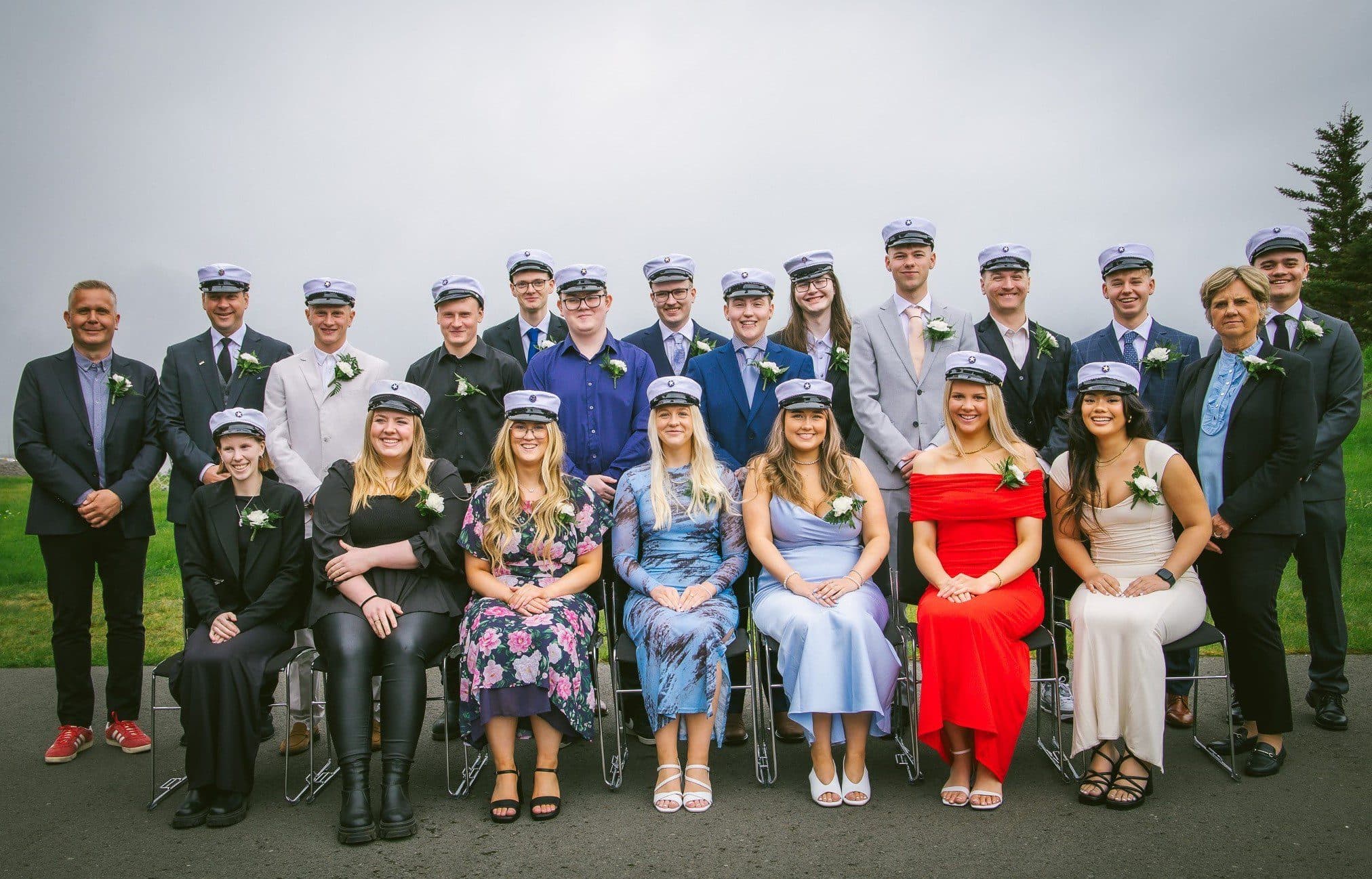 Hópur nýstúdenta ásamt skólameistara og aðstoðarskólameistara. Ljósm. MB