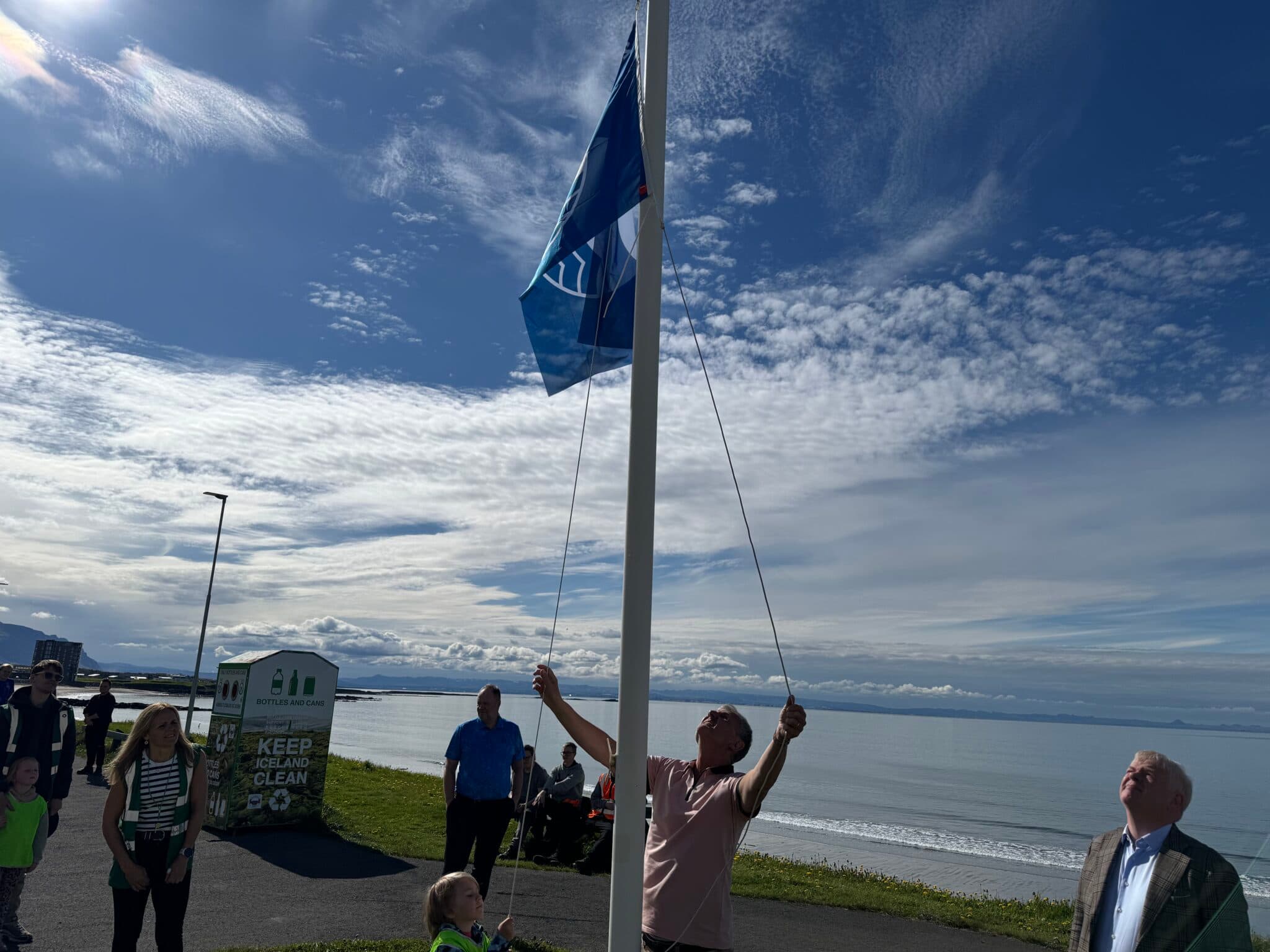 Bláfánanum flaggað á Langasandi í þrettánda sinn