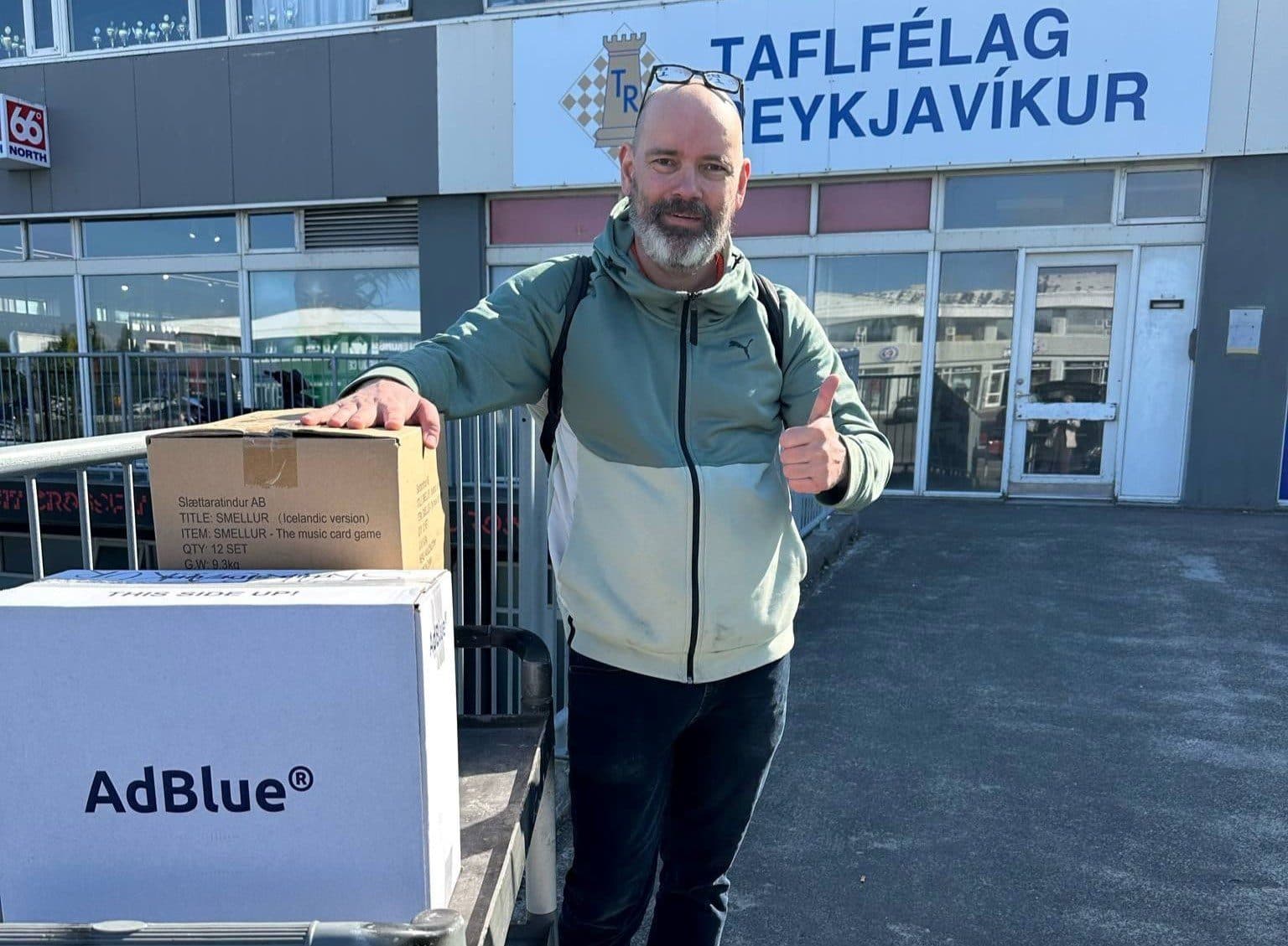 : Ingvar Þór Jóhannesson formaður TR var alsæll með gjöfina. Ljósm. fva