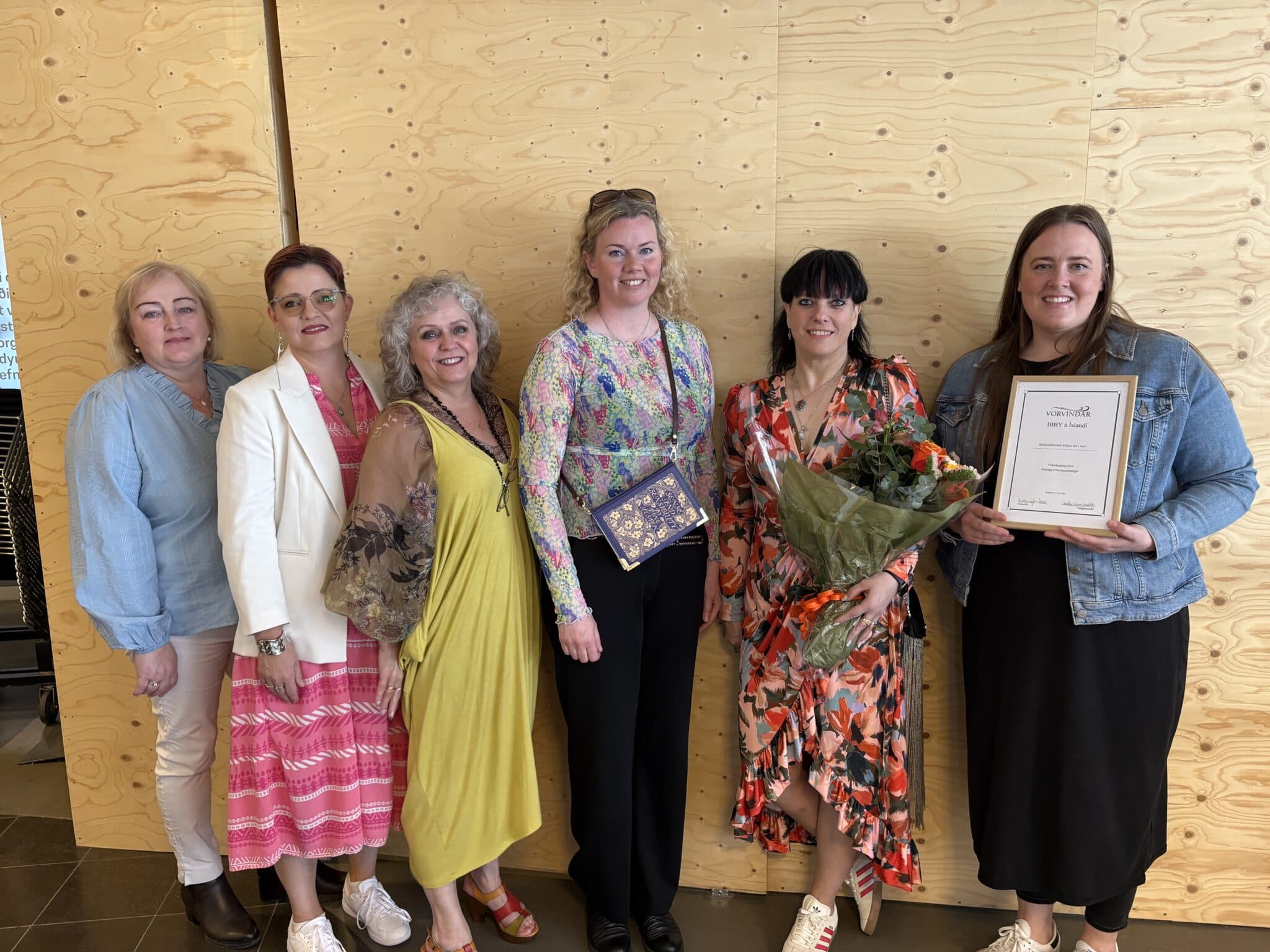 F.v. Anna Kristín Magnúsdóttir, Heiðrún Hallgrímsdóttir, Elsa Björnsdóttir, Selma Rut Þorkelsdóttir, Lilja Magnúsdóttir og Kristín Alma Sigmarsdóttir sem tóku við viðurkenningunni. Ljósm. tfk