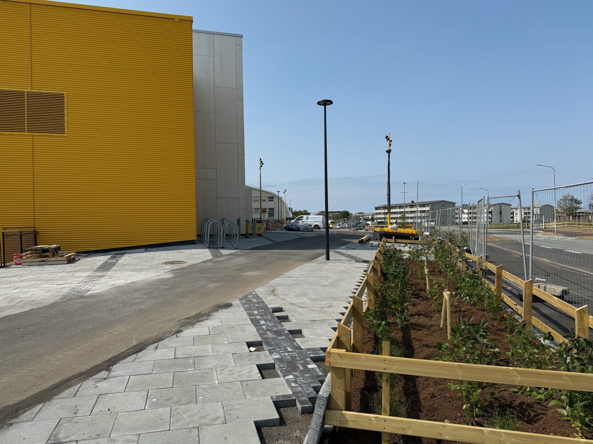 Nú eru framkvæmdir við lóð nýja íþróttahússins vel á veg komnar.