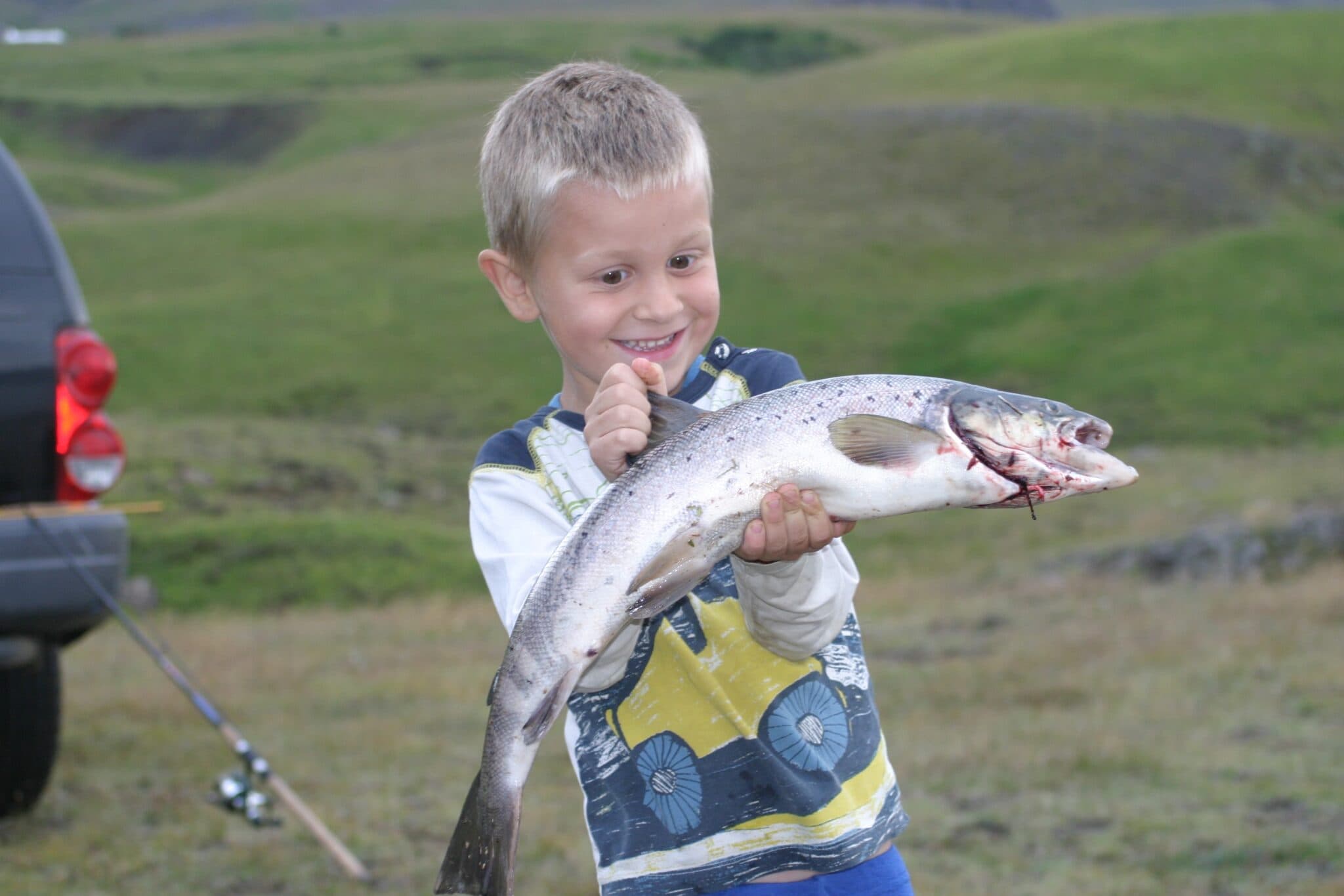 Lax og laxveiðar eru drjúgmiklar auðlindir í Borgarfirði og hefur svo verið um áratugaskeið. Myndin er úr safni Skessuhorns að stoltum veiðimanni með Maríulaxinn sinn.
