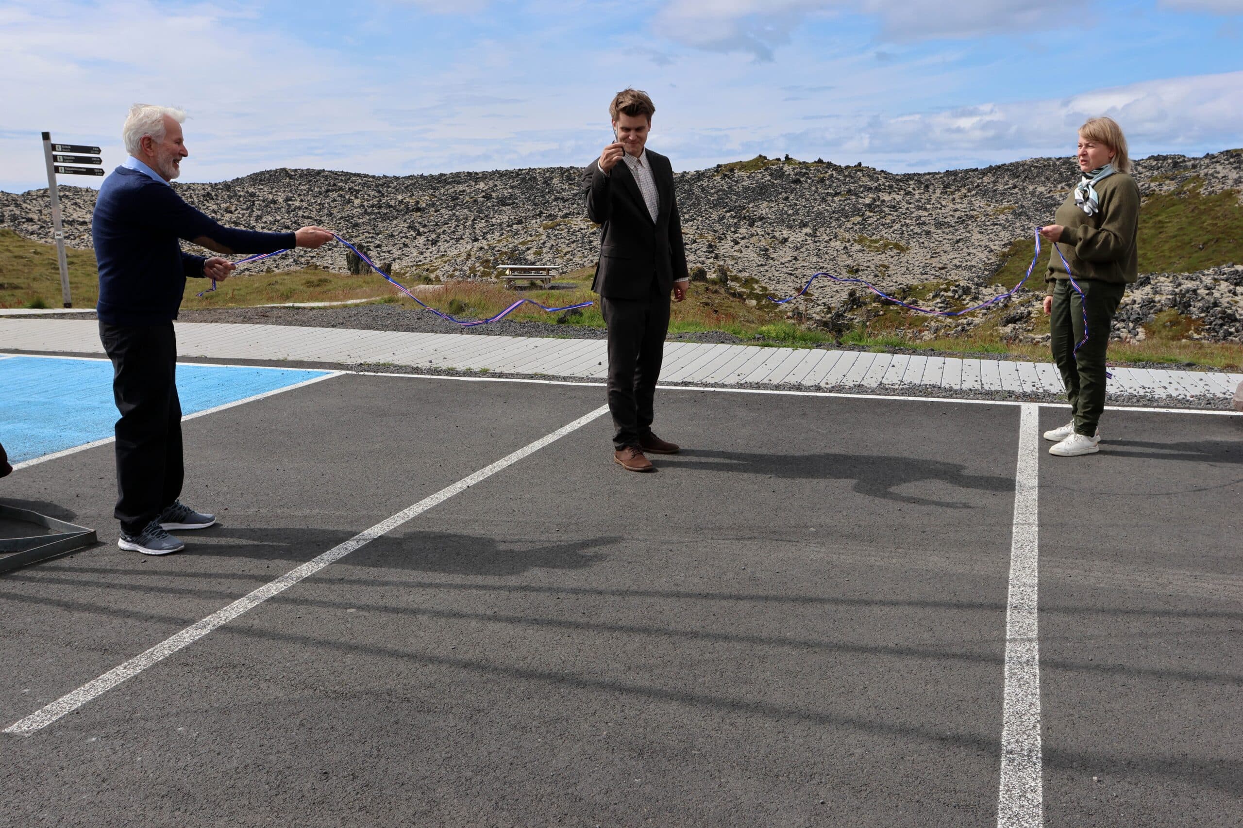 Síðastliðinn laugardag var formleg opnun á endurbættum Dritvíkurvegi á Snæfellsnesi. Við það tilefni var mikið um gestagang og veitingar bornar á borð í Þjóðgarðinum. Ragnheiður Sigurðardóttir, sem er nýráðin þjóðgarðsvörður, bauð gesti og gangandi velkomna og Sigrún Ágústsdóttir forstjóri Náttúruverndarstofnunar ávarpaði samkomuna. Kristinn Jónasson bæjarstjóri hélt sömuleiðis ávarp áður en Jóhann Páll Jóhannsson umhverfis,- orku- og loftslagsráðherra hélt ræðu. Það var svo ráðherra sem klippti á borðann og naut liðsinnis Björns Jónssonar fyrrverandi rekstrarstjóra Vegagerðirnar og Sigrúnar Ágústsdóttur. Að vígslu lokinni var boðið uppá gönguferð með hátíðarívafi niður á Djúpalónssand.