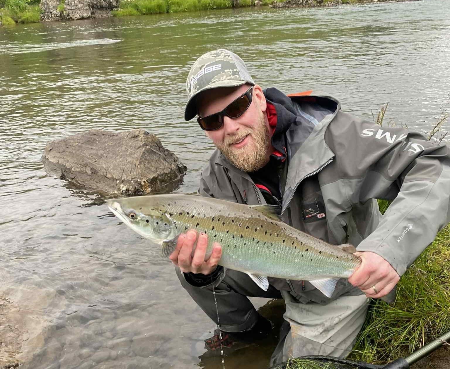 Eiríkur Garðar Eiríksson með flottan lax úr Laxá í Leirársveit.