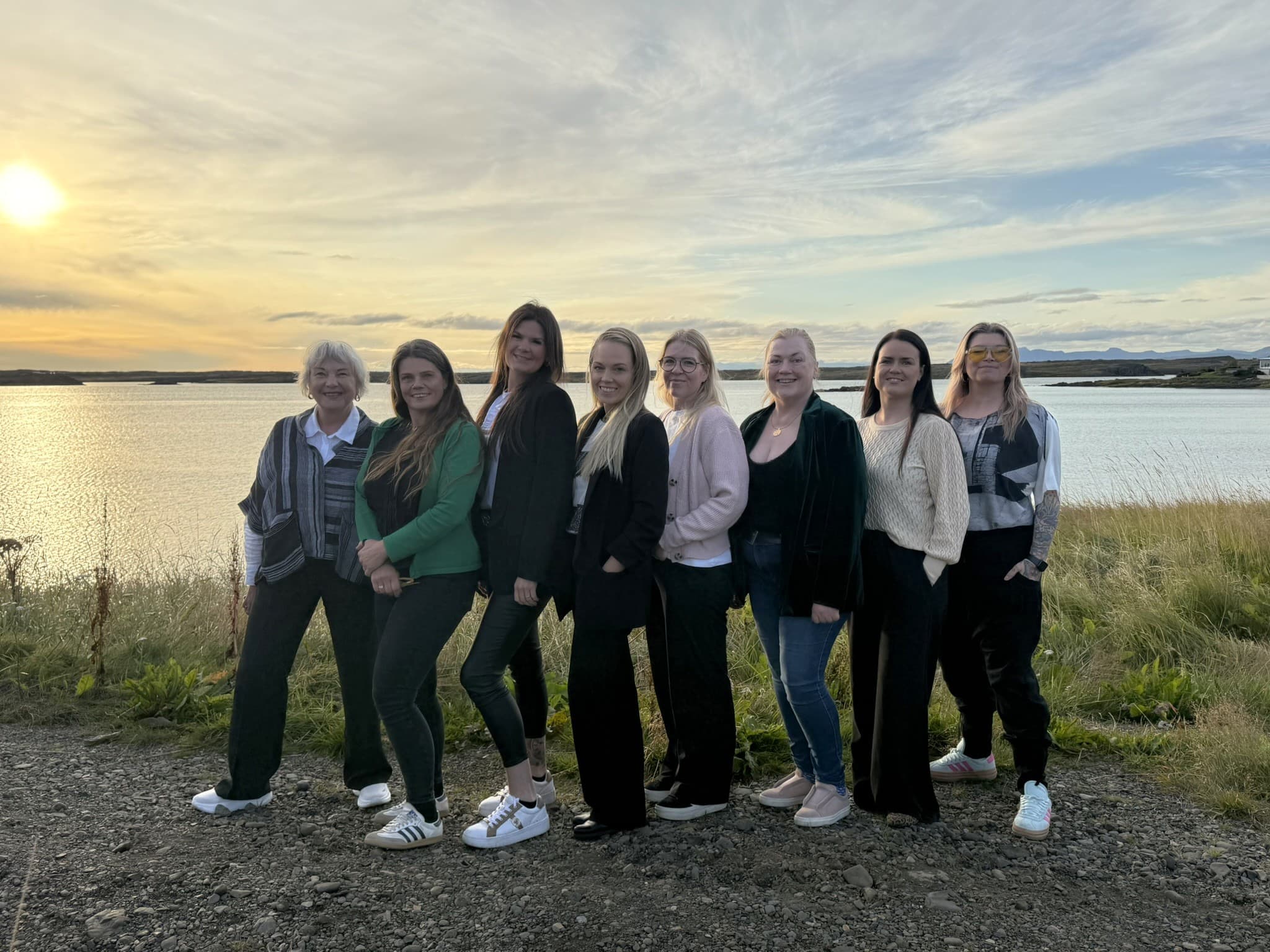 Af aðafundi FKA 2025. Sigríður Margrét Guðmundsdóttir félagskona, Eyrún ritari, Valdís formaður, Halldóra fráfarandi stjórnarkona, Sólveig Hallsteinsdóttir félagskona, Margrét Birna Kolbrúnardóttir félagskona, Alexandra Ýr fyrrum formaður og Þórey Hafliðadóttir úr aðalstjórn FKA sem mætti ásamt Andreu Róbertsdóttur framkvæmdastjóra FKA. Steinunn og Gyða gátu ekki mætt á aðalfundinn. Ljósm. Andrea Róbertsdóttir.