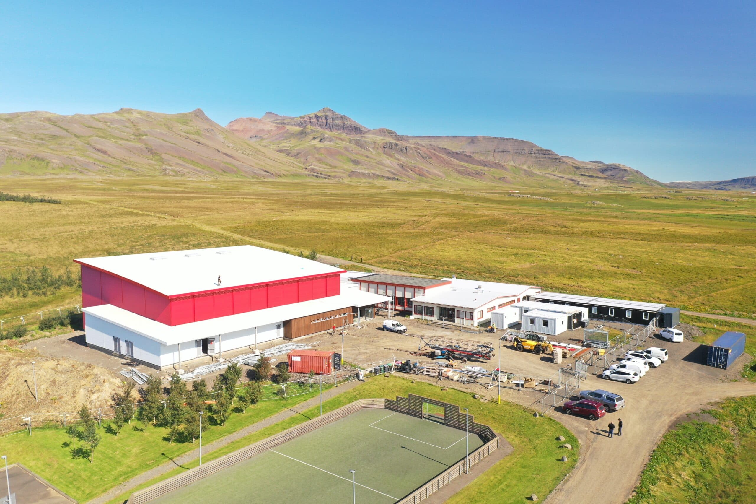Nýtt íþróttahús er nú risið við Heiðarborg í Hvalfjarðarsveit, skammt frá Heiðarskóla. Húsið er fullbúið að utan en nýverið var skrifað undir samning við verktakann, K16 ehf. um að sjá um alla vinnu innan dyra. Sá samningur felur í sér lagnavinnu, innréttingar og búnað ásamt lóðafrágangi. Verklok verða fyrir upphaf skólaárs eftir ár, þ.e. 1. ágúst 2026. Efla verkfræðistofa mun líkt og áður sjá um verkeftirlit framkvæmda en umsjón með verkinu, fyrir hönd Hvalfjarðarsveitar, hefur Hlynur Sigurdórsson, verkefnastjóri framkvæmda og eigna.