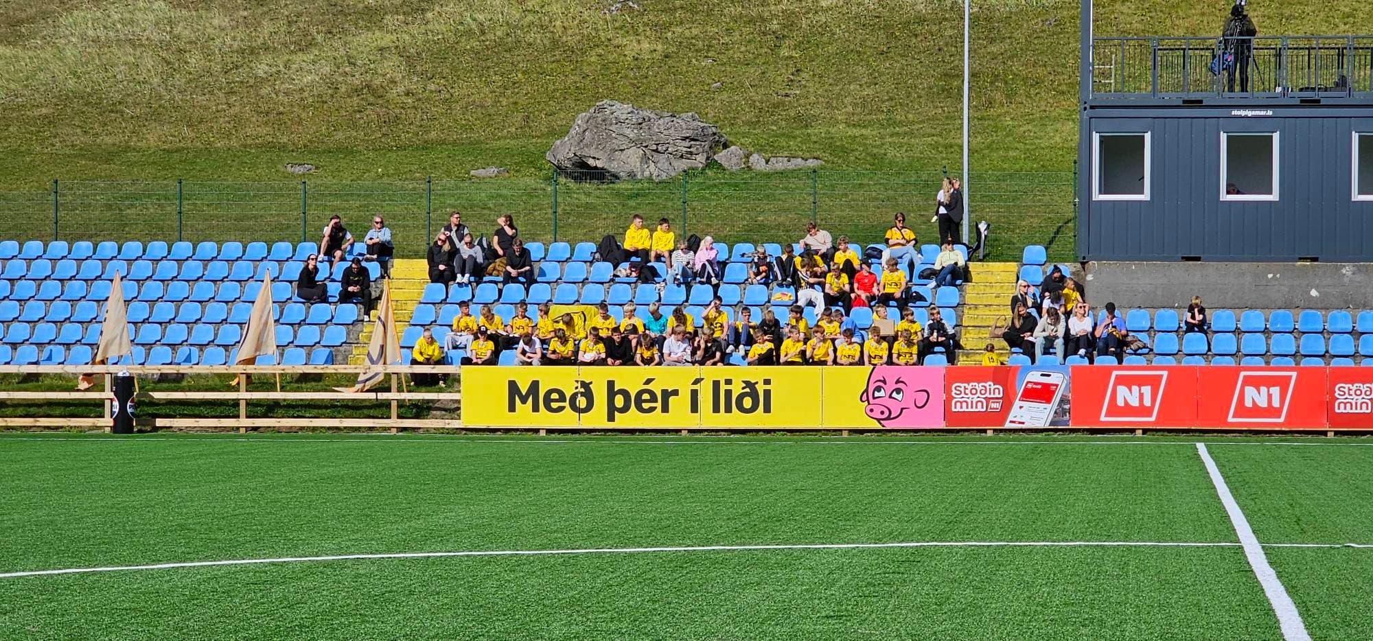 Dágóður hópur stuðningsmanna fylgdi liði ÍA til Vestmannaeyja. Ljósm: Berndsen Photo