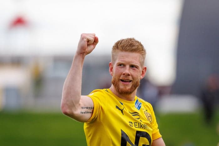 Viktor Jónsson gerði annað af fjórum mörkum Skagamanna úr víti. Ljósm. fotbolti.net