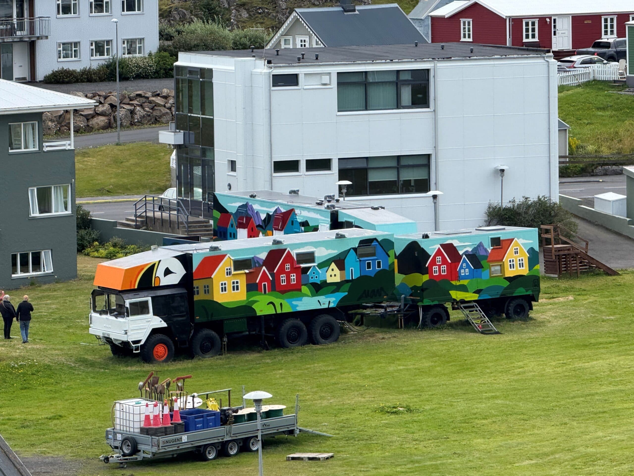 Fyrir einhverja handvömm tækninnar voru nokkur litskrúðug ökutæki við gististaðinn „The Stykkisholmur Inn“ í Stykkishólmi auglýst sem gistingarmöguleiki á Booking.com fyrir stuttu. Um nokkra flutningabíla er að ræða sem notaðir hafa verið fyrir starfsfólk gististaðarins og einstaka listamenn sem hafa gert þar myndskreytingar. Vakin var athygli á málinu á Facebooksíðu íbúa og líflegar umræður sköpuðust. Þar svaraði Vigdís Pála Halldórsdóttir, einn eigenda The Stykkisholmur Inn, því til að þeir hefði verið að prufa sig áfram og því hefði þetta komist inn á skráningu. En trukkarnir væru ekki til leigu hvort sem um eina nótt eða meira væri að ræða og búið væri að loka umræddri síðu á Booking.