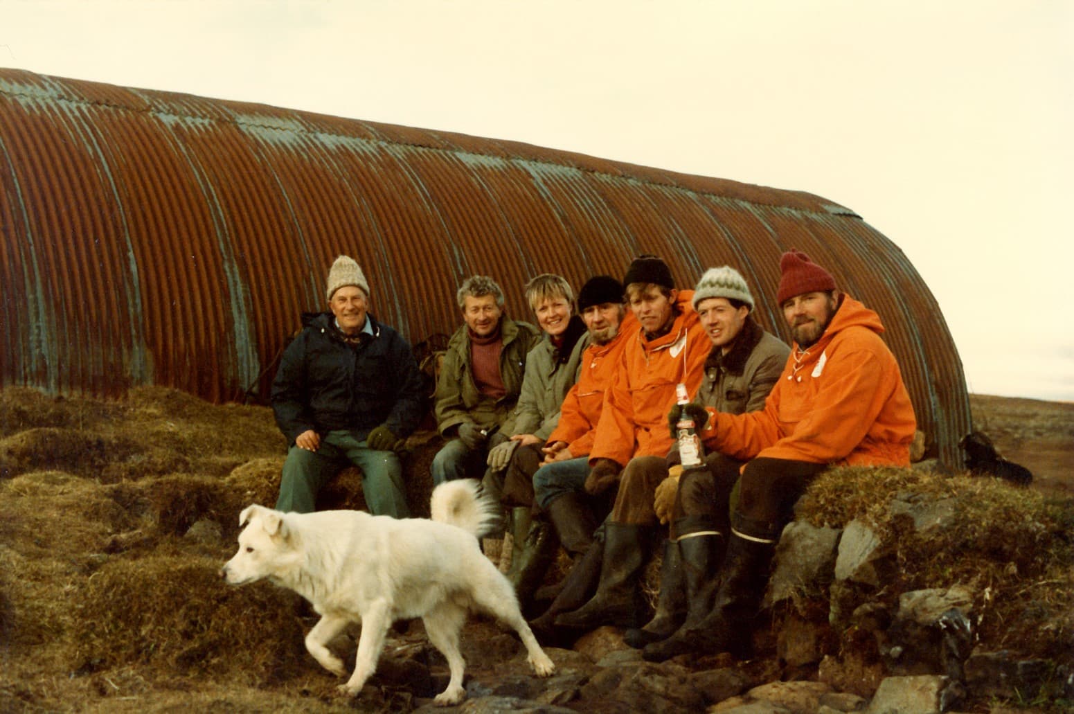 : Setið á rústum gamla skálans í Gilsbakkaseli í þriðju leit. Þorvaldur Hjálmarsson Háafelli, Eyjólfur Andrésson Síðumúla, Ingibjörg Daníelsdóttir Fróðastöðum, Jón Ingimundarson Haukagili, Jóhann Oddsson Steinum, Ásbjörn Sigurgeirsson Ásbjarnarstöðum og Ólafur Guðmundsson Sámsstöðum.
