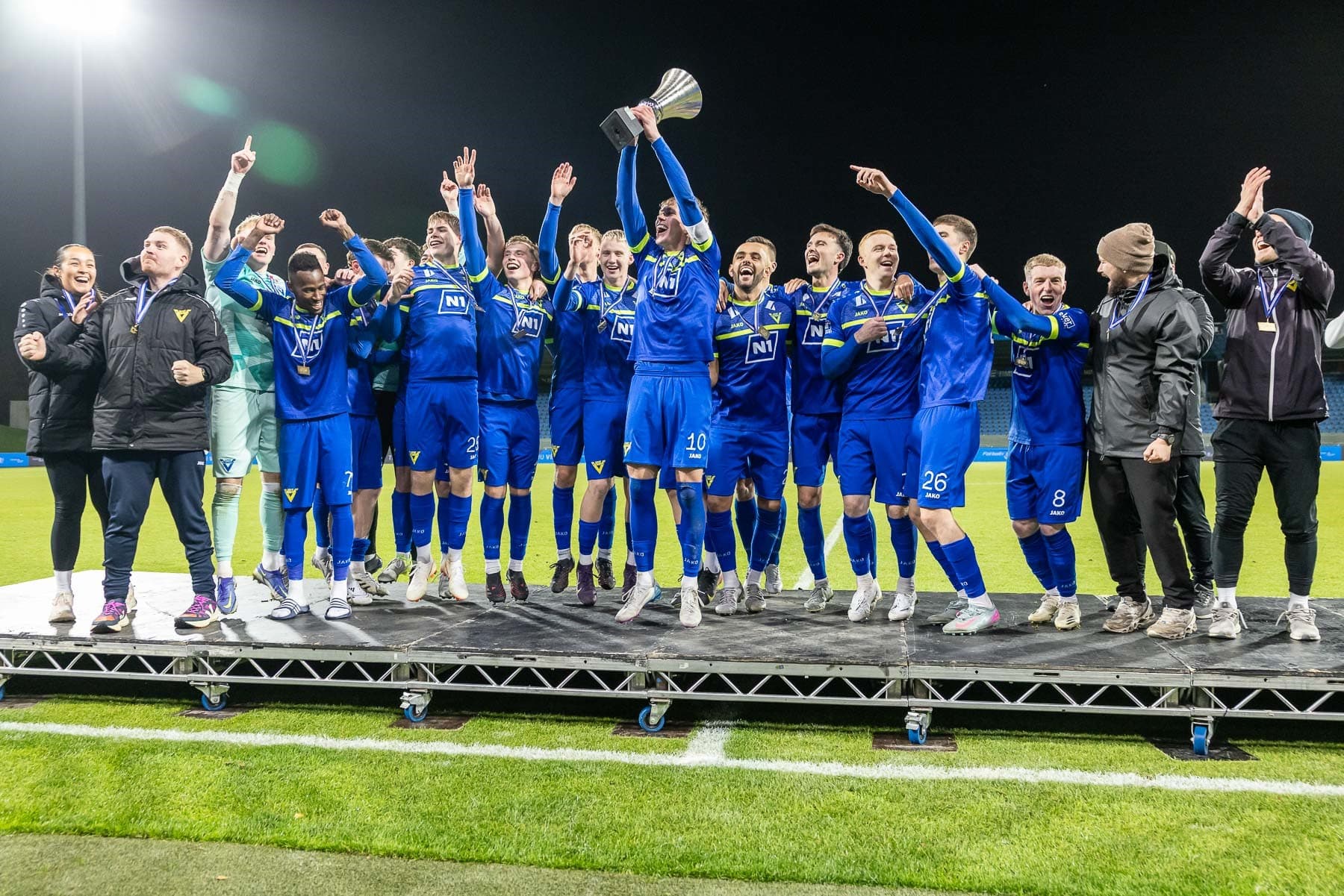 Mikill fögnuður braust út þegar bikarinn fór á loft. Ljósm. tfk