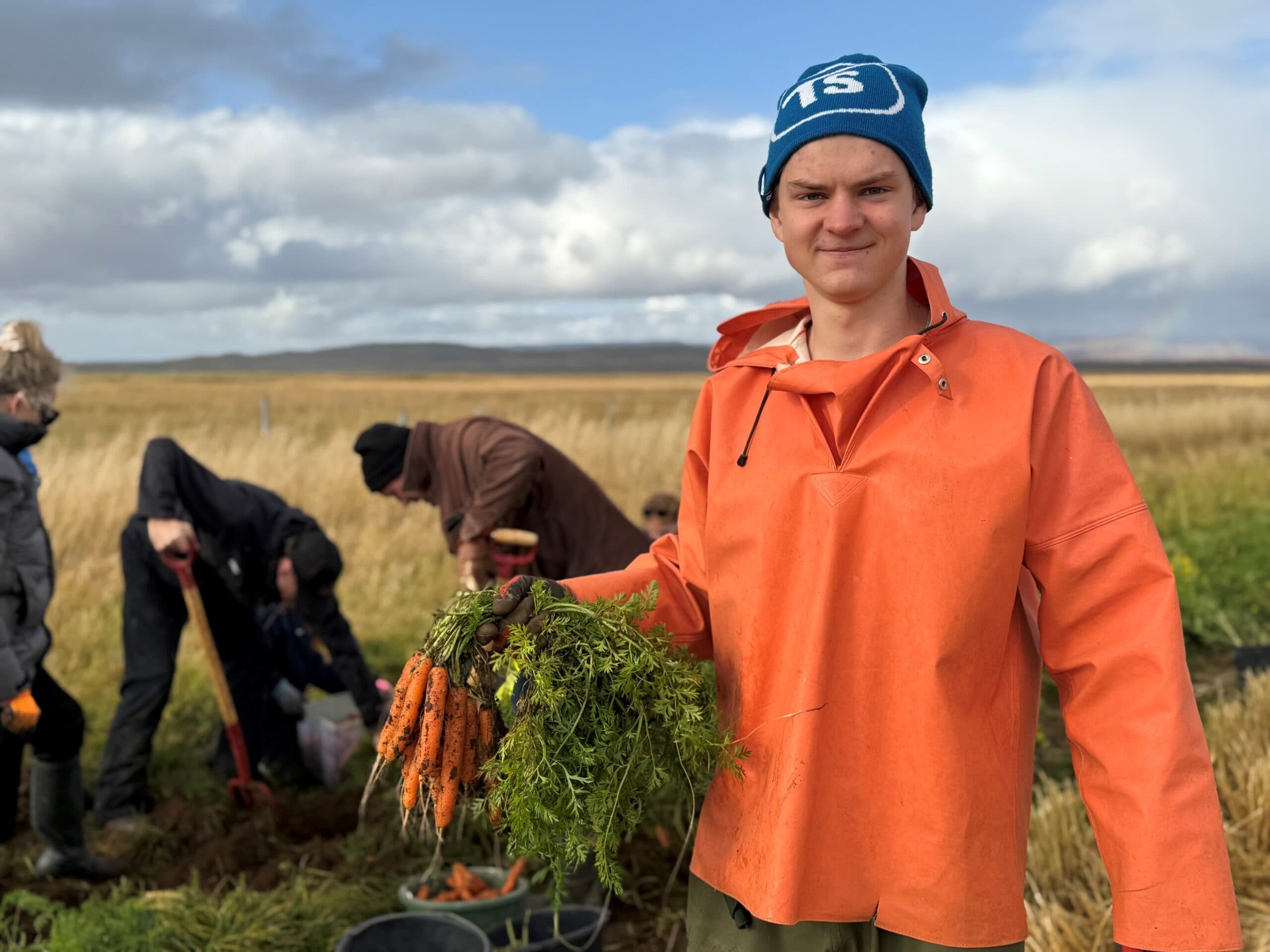 Síðastliðinn laugardag bauð ungur bóndi í Bæjarsveit í Borgarfirði fólki að koma á akurinn og taka upp kartöflur og gulrætur í sjálftínslu. Fjölskyldur mættu og áttu góða stund við uppskerustörf. Búið var að losa um kartöflurnar sem lágu á yfirborðinu og biðu nýrra eigenda. Gulræturnar voru hins vegar teknar upp beint úr garðinum, stórar og einstaklega safaríkar. Uppskeran var svo seld eftir vigt gegn vægu gjaldi.