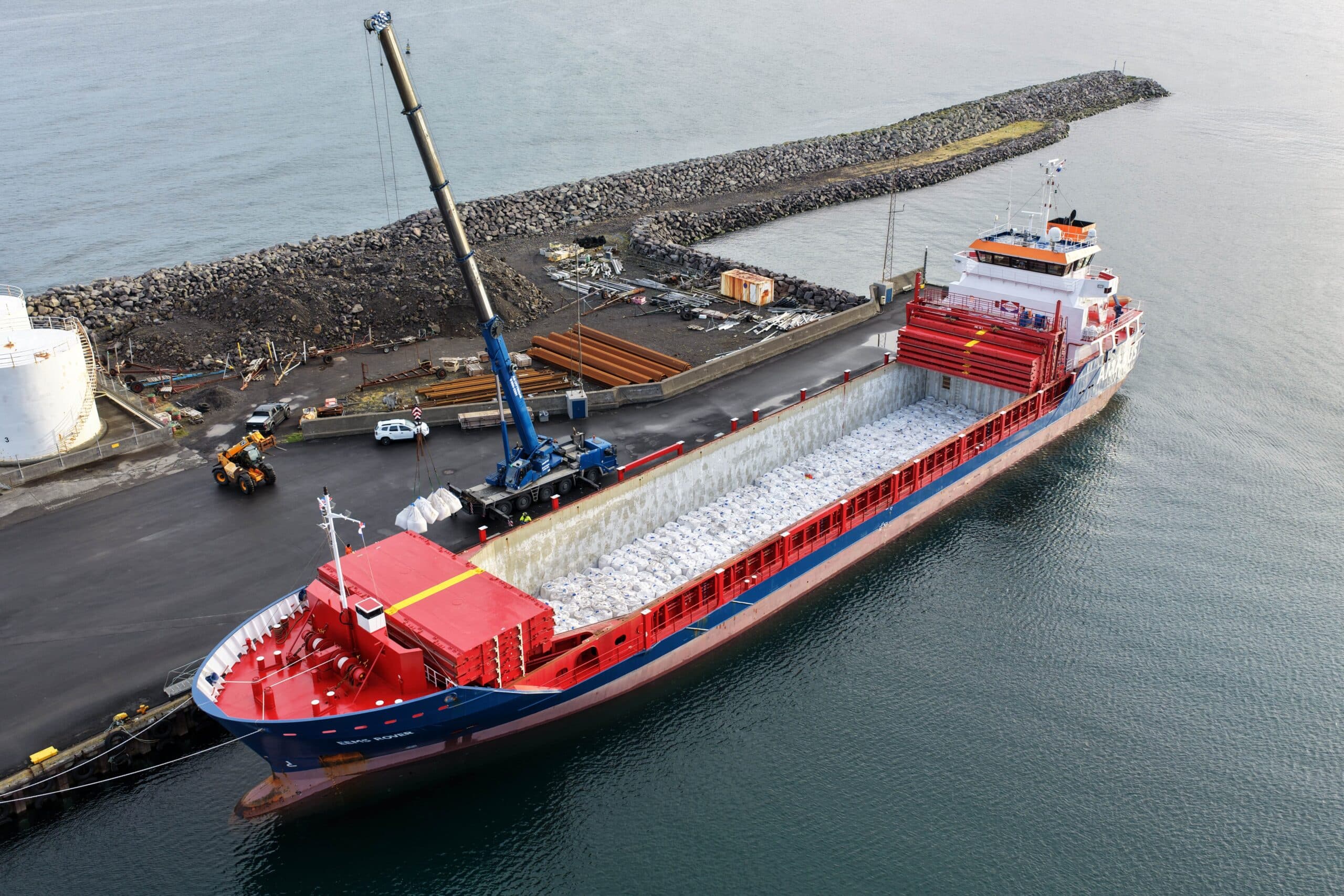Hollenska flutningaskipið Eems Rover kom til Ólafsvíkur á laugardaginn og landaði 1500 tonnum af salti í stórsekkjum fyrir fiskvinnslur í Snæfellsbæ. Vertíðin er nú komin á fullt og mikil þörf á þessari vöru til söltunar á fiski. Skipið kom frá Grundarfirði þar sem það landið einnig.