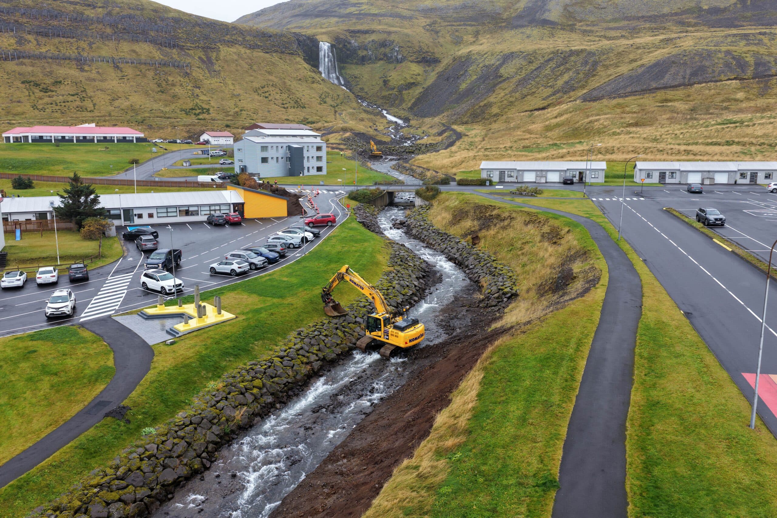Að undanförnu hafa staðið yfir framkvæmdir hjá Borgarverki í Gilinu í Ólafsvík. Verið er að gera endurbætur í læknum sem felast meðal annars í því að hlaða grjótvörn í botninum ásamt því að víkka út farveginn svo hann geti í flóðum flutt meira vatn. Auk þessara framkvæmda verður hreinsað efni fyrir ofan stífluna í Gilinu en þar hefur safnast mikið af jarðvegi í áranna rás. Framkvæmdaraðili er Snæfellsbær með stuðningi Ofanflóðasjóðs og er gert ráð fyrir að verkinu ljúki í byrjun nóvember.