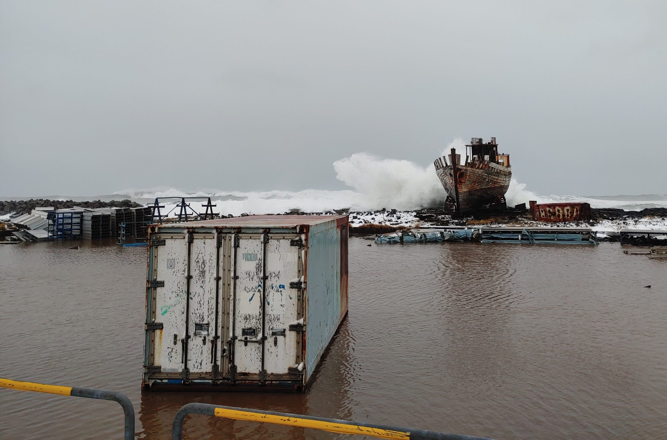 Sjór gengur á land við Krókalón 8. febrúar 2022.