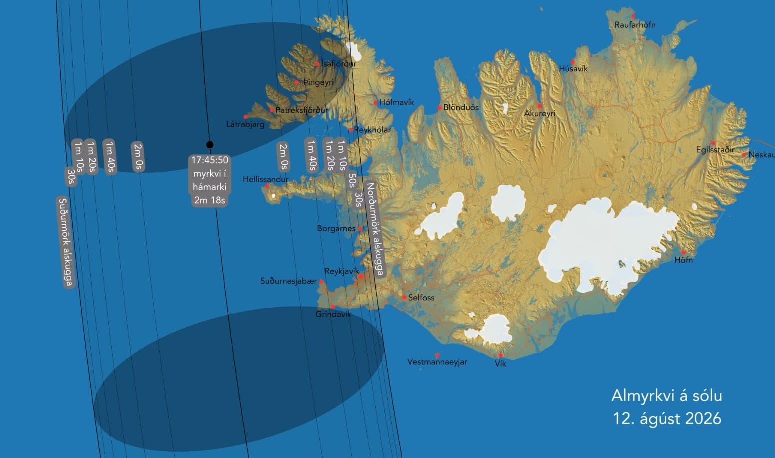 Almyrkvi á sólu verður sjáanlegur frá Íslandi í fyrsta sinn frá árinu 1954 miðvikudaginn 12. ágúst 2026 og mun almyrkvaslóðin liggja yfir Vestfirði, Snæfellsnes, höfuðborgarsvæðið og Reykjanesskaga. Atvinnumálanefnd Dalabyggðar ræddi málið á fundi sínum á dögunum en almyrkvinn mun sjást frá Skógarströnd, Fellsströnd og Skarðsströnd. Nefndin fékk til fundarins Sævar Helga Bragason stjörnufræðing. Á fundi nefndarinnar kom fram að allt gistirými á Vestfjörðum, Dölum, Snæfellsnesi, Norðurlandi vestra sé nú uppselt 12. ágúst 2026.