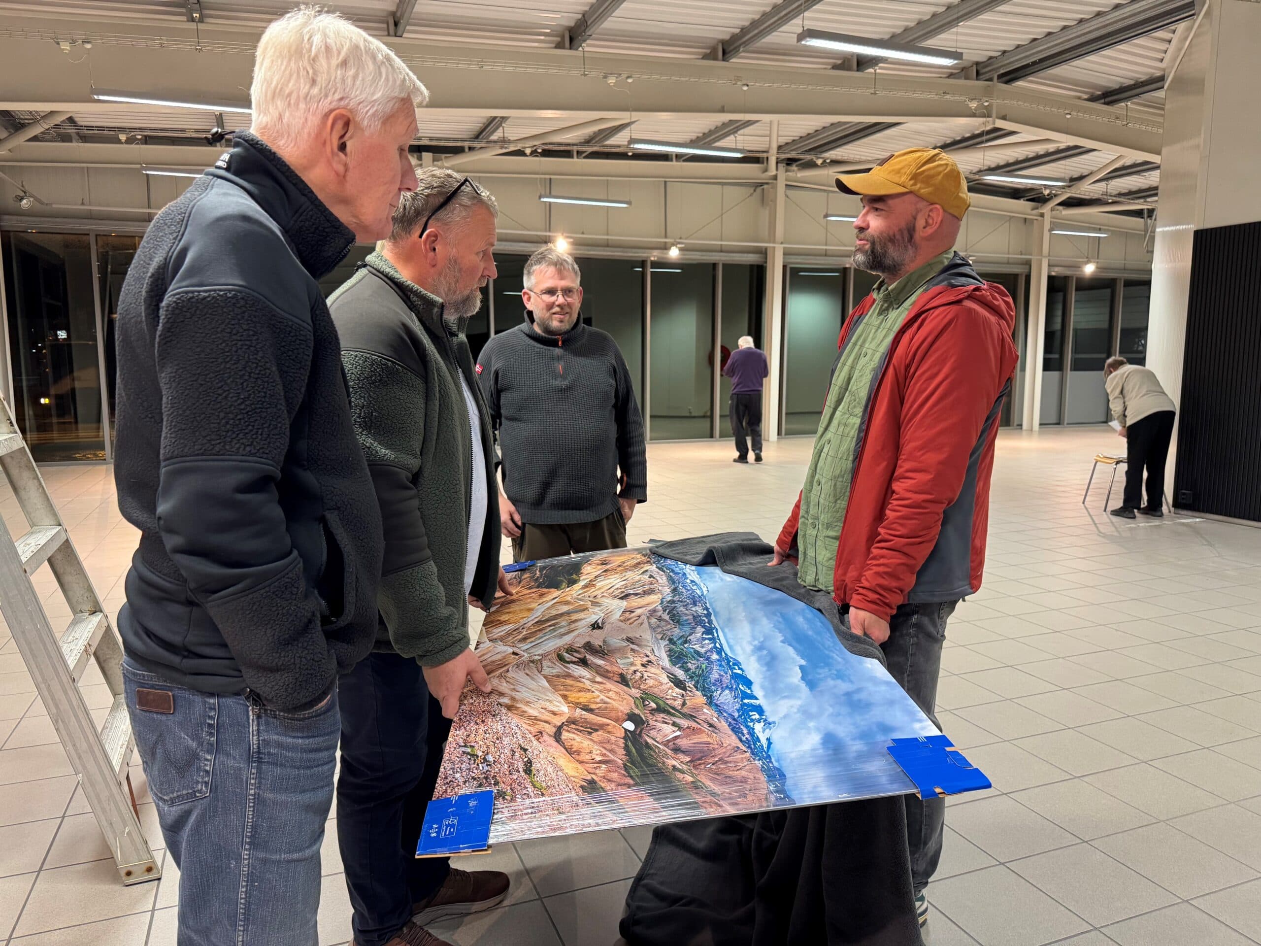Ljósmyndararnir Jón Sævar, Sigurjón, Eyjólfur og Hrannar Örn voru í gærkvöldi að vinna við uppsetningu sýningarinnar. Ljósm. gó