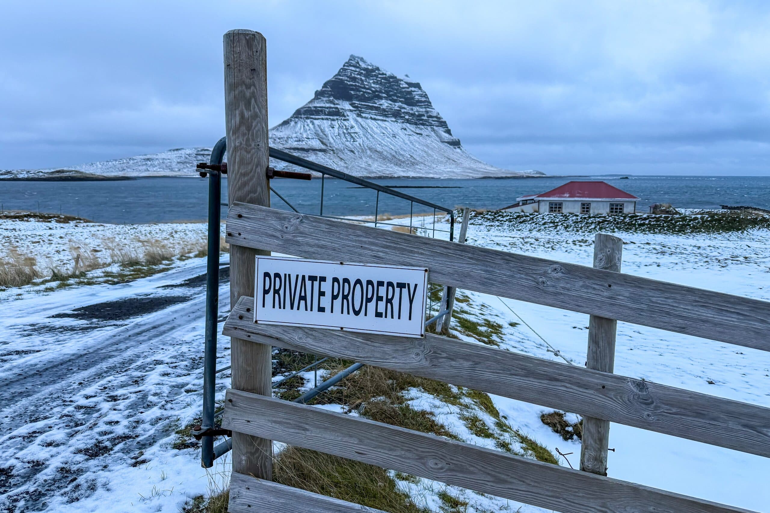 Umrætt skilti þar sem stendur “Private properti” er væntanlega ástæða erindis Vegagerðarinnar.