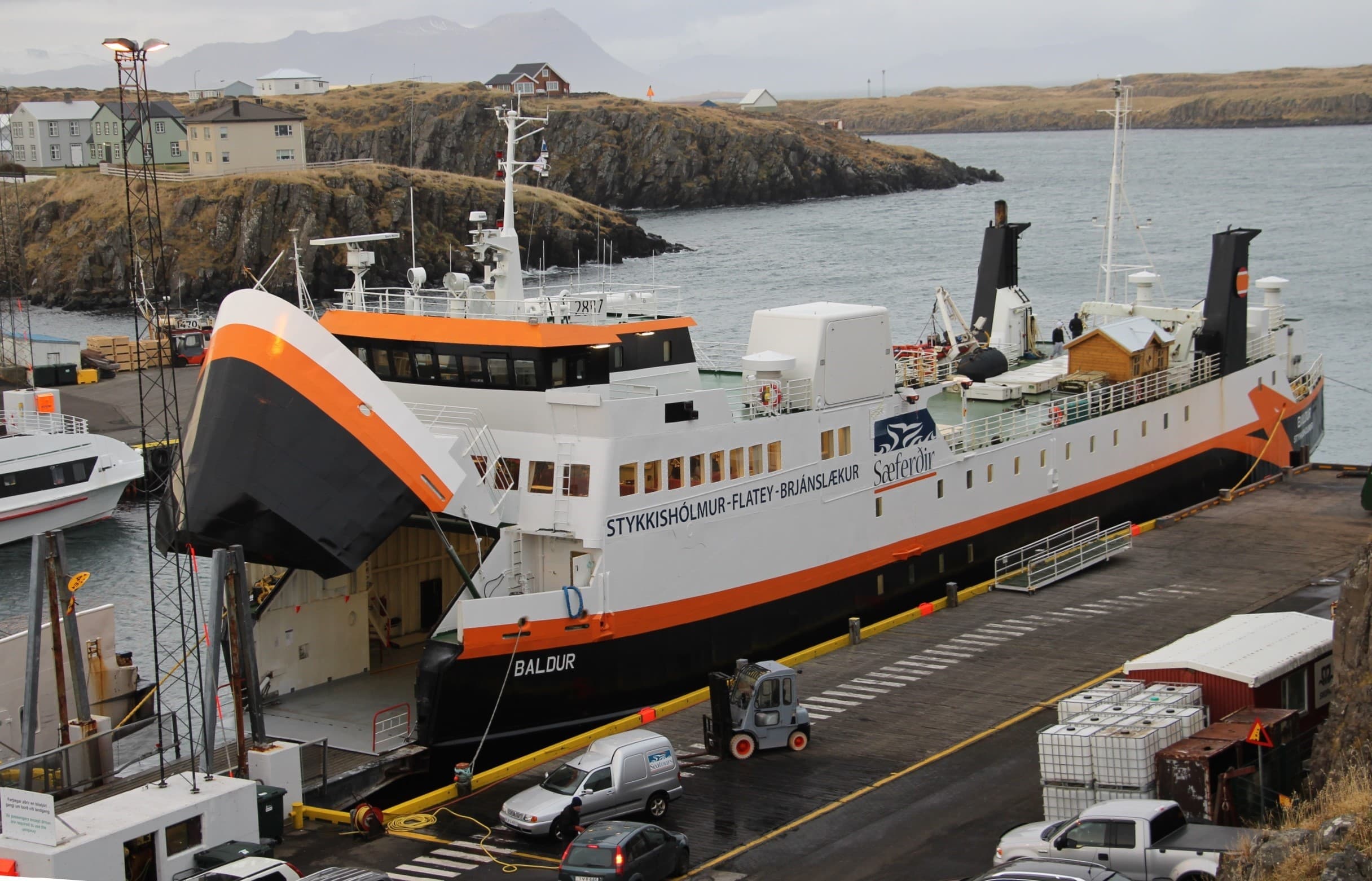 Breiðafjarðarferðan Baldur í Stykkishólmi. Skipið er varaskip fyrir Herjólf og var því á siglingum til Vestmannaeyja um tíma í haust þegar Herjólfur fór í slipp.