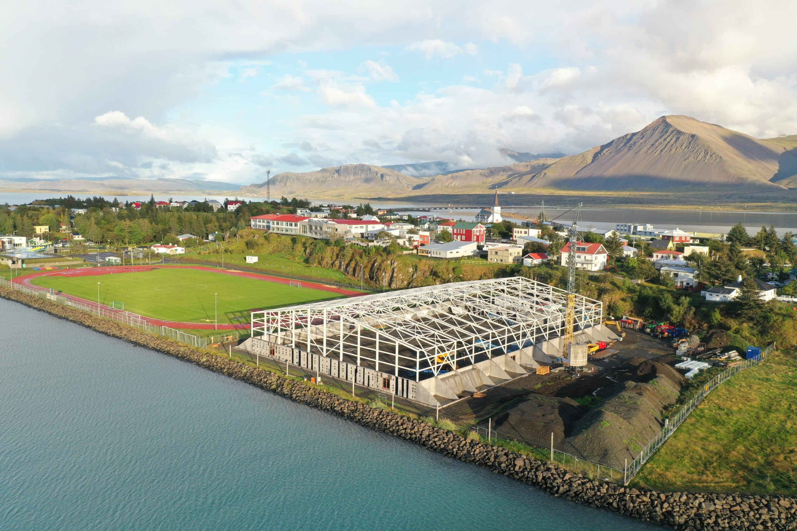 Talsverð tímamót verða í Borgarbyggð á fimmtudaginn þegar reisugildi hins nýja fjölnota íþróttahúss í Borgarnesi verður haldið hátíðlegt. Fyrsta skóflustunga að húsinu var tekin 20. mars á þessu ári og verklok eru áætluð í ágúst á næsta ári. Nú er allt stálvirki hússins komið upp, steypuvinnu er lokið og er nú unnið að einangrun og lokun þaksins.