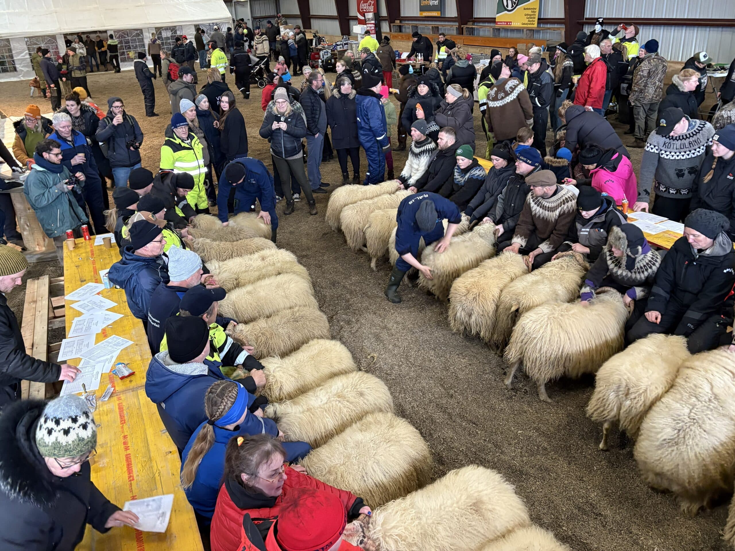 Fréttir06.11.2025 08:03Fjöldi fólks og hrúta samankominn í reiðhöllinni í Búðardal, þar var einnig matar- og handverksmarkaður auk þess sem fyrirtæki voru með kynningarbása. Ljósm. Steinþór LogiLambhrútasýningar á Vesturlandi haustið 2025 – þriðji hlutiÁrshátíð sauðfjárbænda í Dölum Copy Link