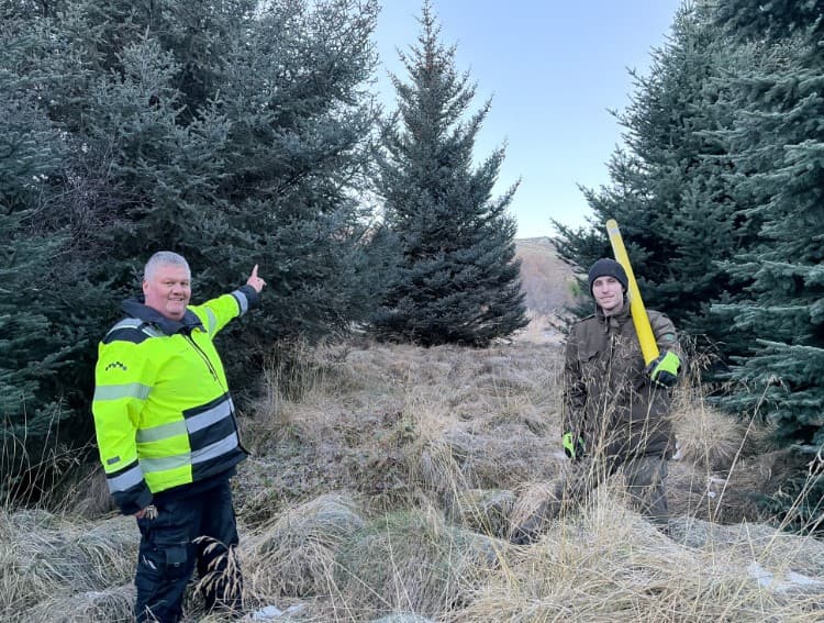 Þeir félagar Jóhann Páll og Viktor benda á Hamborgartréð.