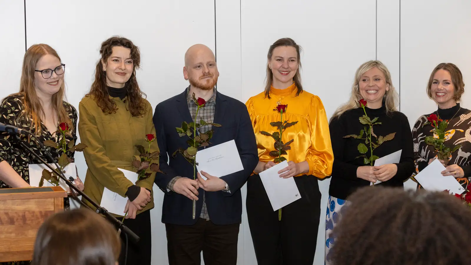 Myndin sýnir þau sem tilnefnd voru í flokki barna- og unglingabóka. Ljósm. ruv.is/ Ragnar Visage