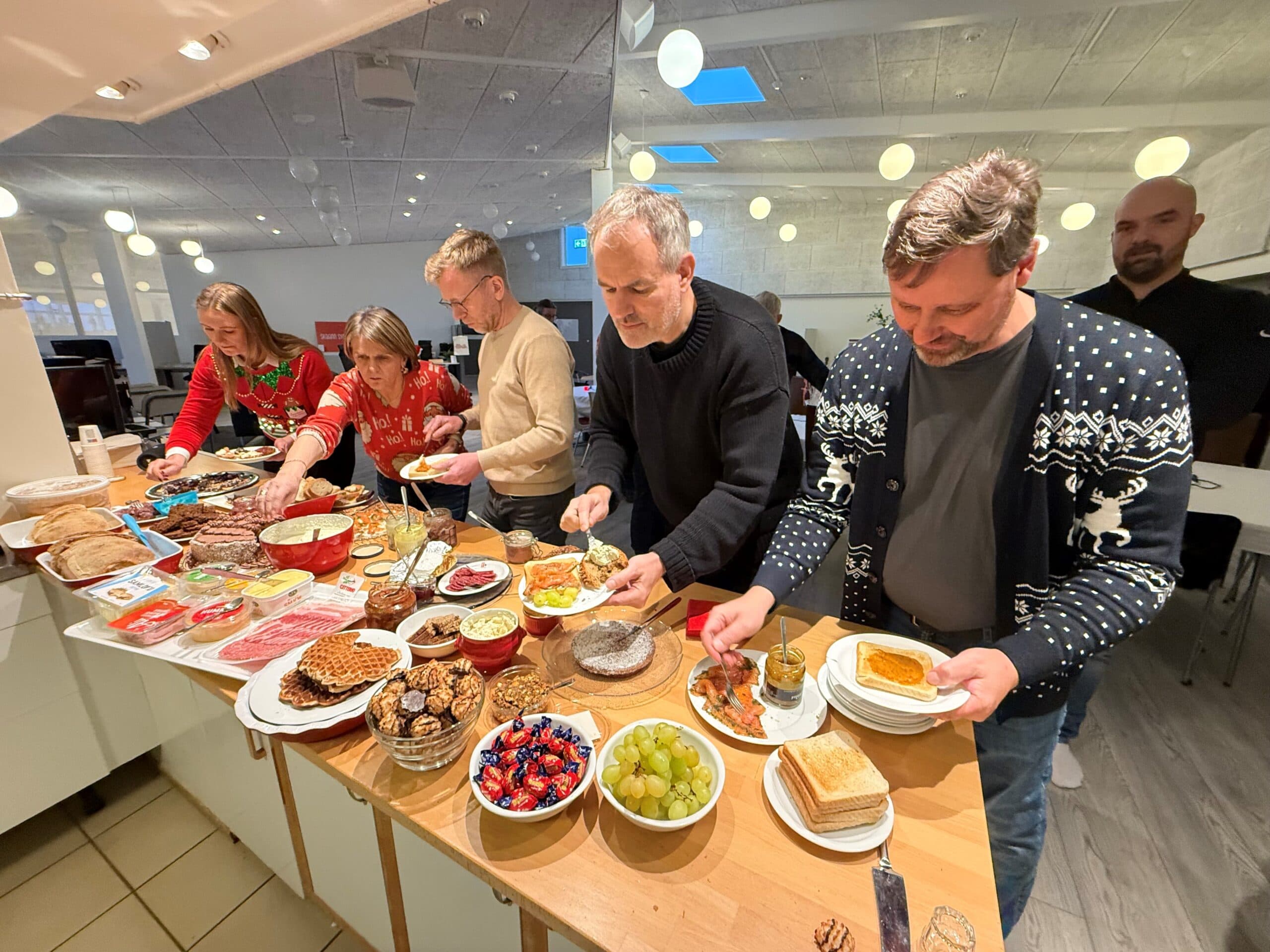 Í hádeginu í dag var svokallað Pálínuboð hjá fólkinu sem hefur vinnuaðstöðu í Breið, nýsköpunarsetri á Akranesi. Þar starfa nokkrir tugir einstaklinga og þykir við hæfi að af og til sé samhristingur til að kynnast betur fólkinu undir sama þaki. Undanfarið hafa verið nokkur mannaskipti í húsinu og var tækifæri nýtt til að fólk kynnti sig, segði hvað það starfaði við og frá leyndum hæfileikum. Allir lögðu til veitingar á hlaðborðið og margt áhugavert sem boðið var upp á.