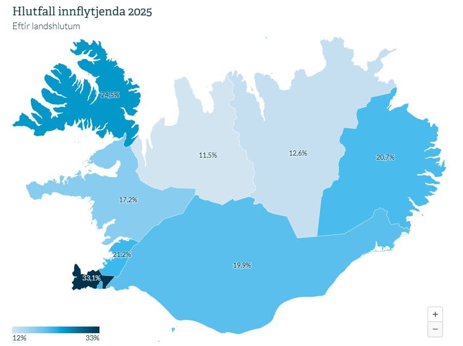 Innflytjendur á Vesturlandi voru 3.081 eða rúmlega 17,3% mannfjöldans 1. janúar 2025. Innflytjendum fækkaði lítilsháttar hlutfallslega á milli ára. Þetta kemur fram í nýjum tölum frá Hagstofu Íslands. Með innflytjanda er átt við þann sem fæddur er erlendis og á foreldra, afa og ömmur sem öll eru fædd erlendis.