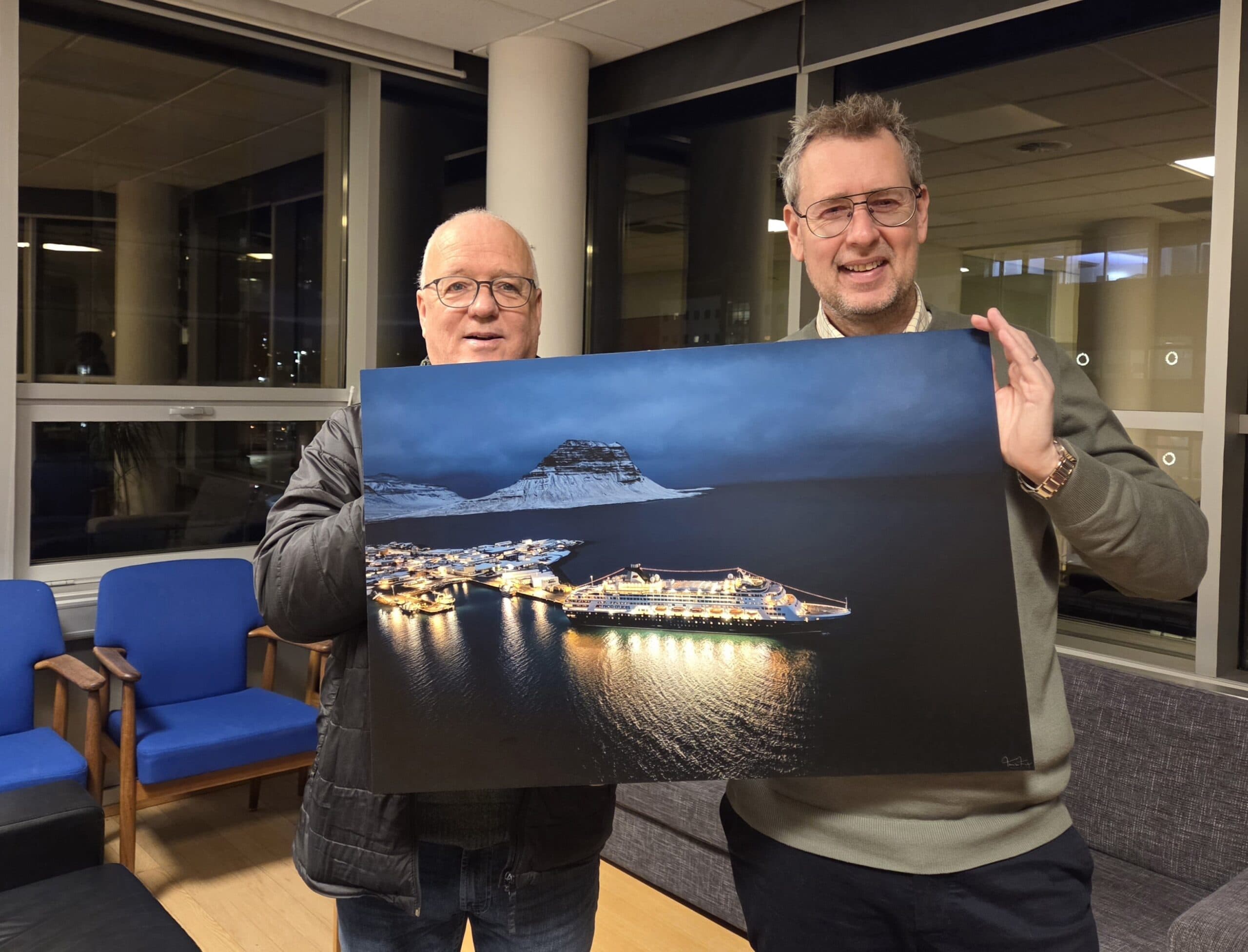 19.12.2025 11:45Á skrifstofu Cruise Iceland afhenti Hafsteinn Sigurði Jökli framkvæmdastjóra myndina sem prýða mun skrifstofu samtakanna í Borgartúninu.Gaf mynd af síðasta haustskipinuÞessi grein er aðeins aðgengileg áskrifendum Copy Link