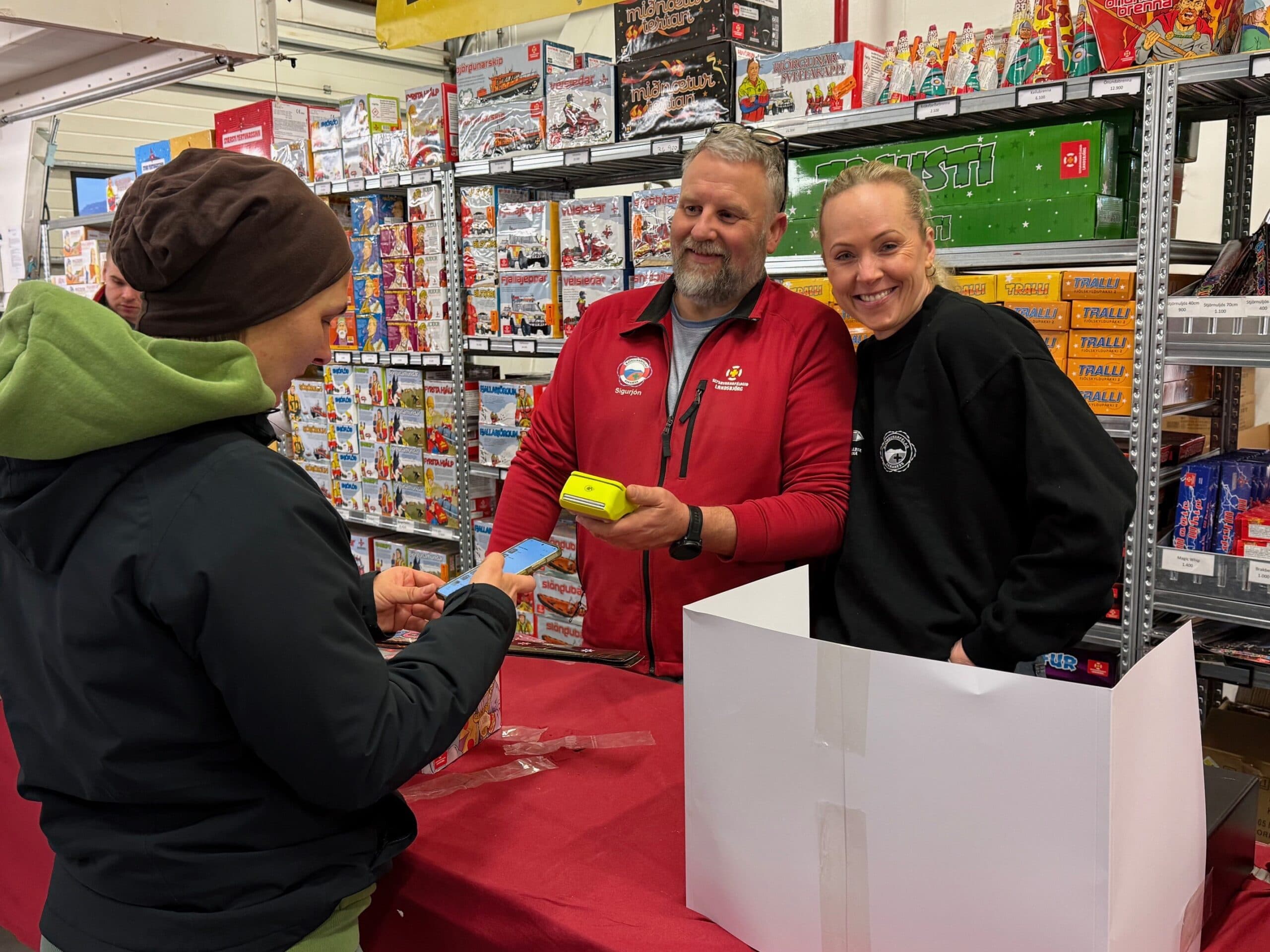 Blaðamaður Skessuhorns leit við í morgun á sölustað flugelda hjá Björgunarfélagi Akraness við Kalmansvelli 2. Þar taka menn daginn snemma og hefð fyrir því að bjóða upp á kjarngóðan morgunmat á gamlársdagsmorgun áður en fyrstu gestirnir fara að streyma í hús. Sem fyrr er gamlársdagur langstærsti söludagurinn, en gærdagurinn kom vel út og verður í öðru sæti. Birna Björnsdóttir segir að opið verði til klukkan 16 í dag og á hún von á mjög góðri sölu enda veðurspáin frábær og létt yfir fólki almennt, að hennar sögn. Aðspurð um "Rakettupakka 2", sem Landsbjörg þurfti að innkalla í gær vegna galla, sagði hún að björgunarfélagið hafi verið búið að selja fimmtán slíka pakka, en fólk væri byrjað að koma til að fá þeim skipt fyrir aðra og öruggari.