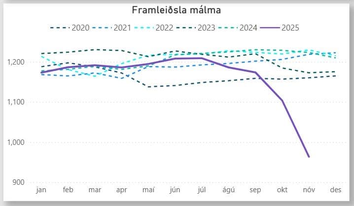 Mælaborðið er afar fróðlegt og einfalt í notkun. Þarna kallaði blaðamaður fram gleggstu skil í raforkunotkun sem orðið hafa þegar framleiðslufall varð í álveri Norðuráls nýlega.