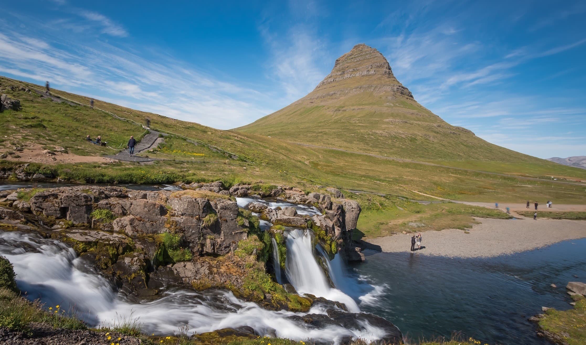 Sumarblíða við Kirkjufellsfoss í Grundarfirði. Ljósm. úr safni