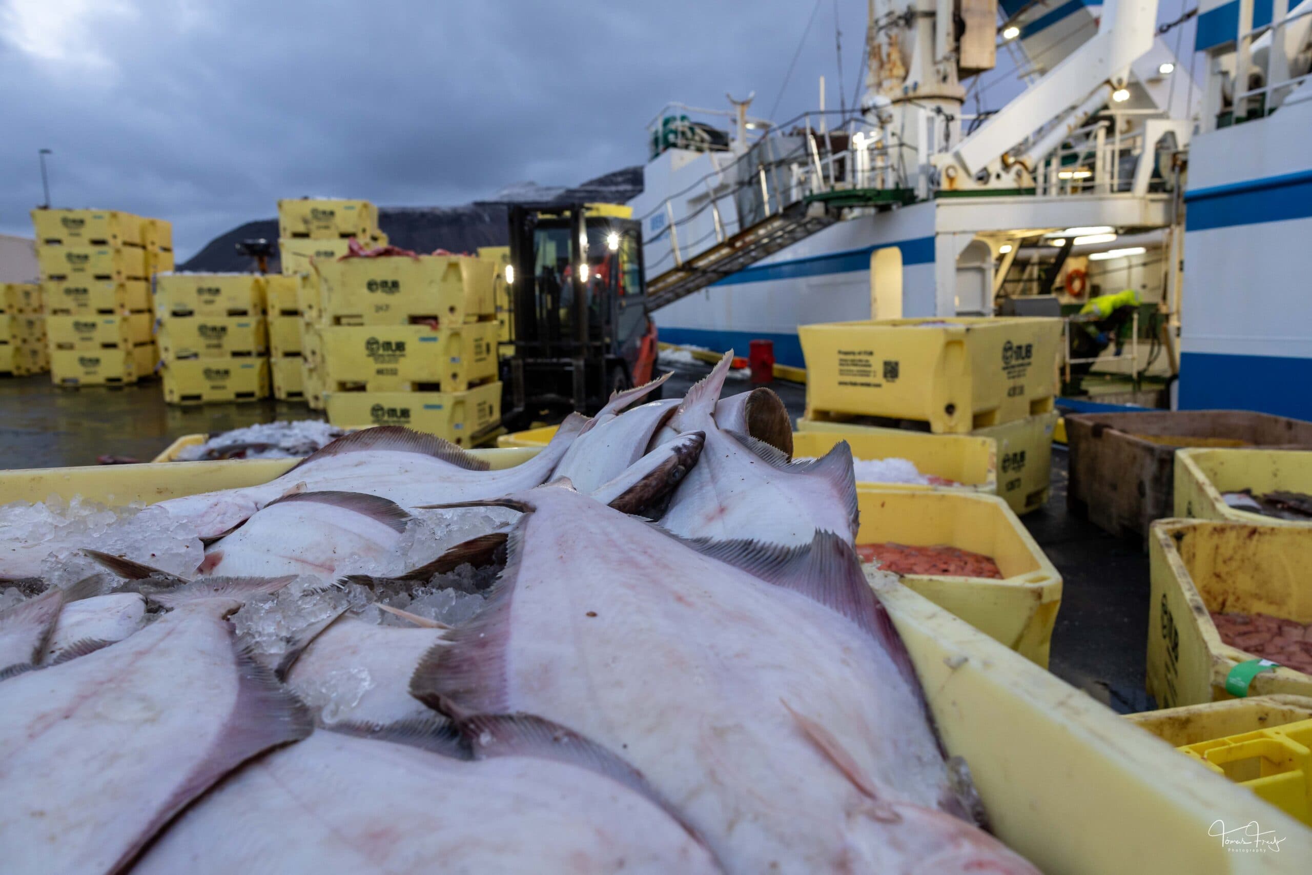 Hluti aflans kominn upp á bryggju mánudaginn 12. janúar. Ljósmyndir: tfk