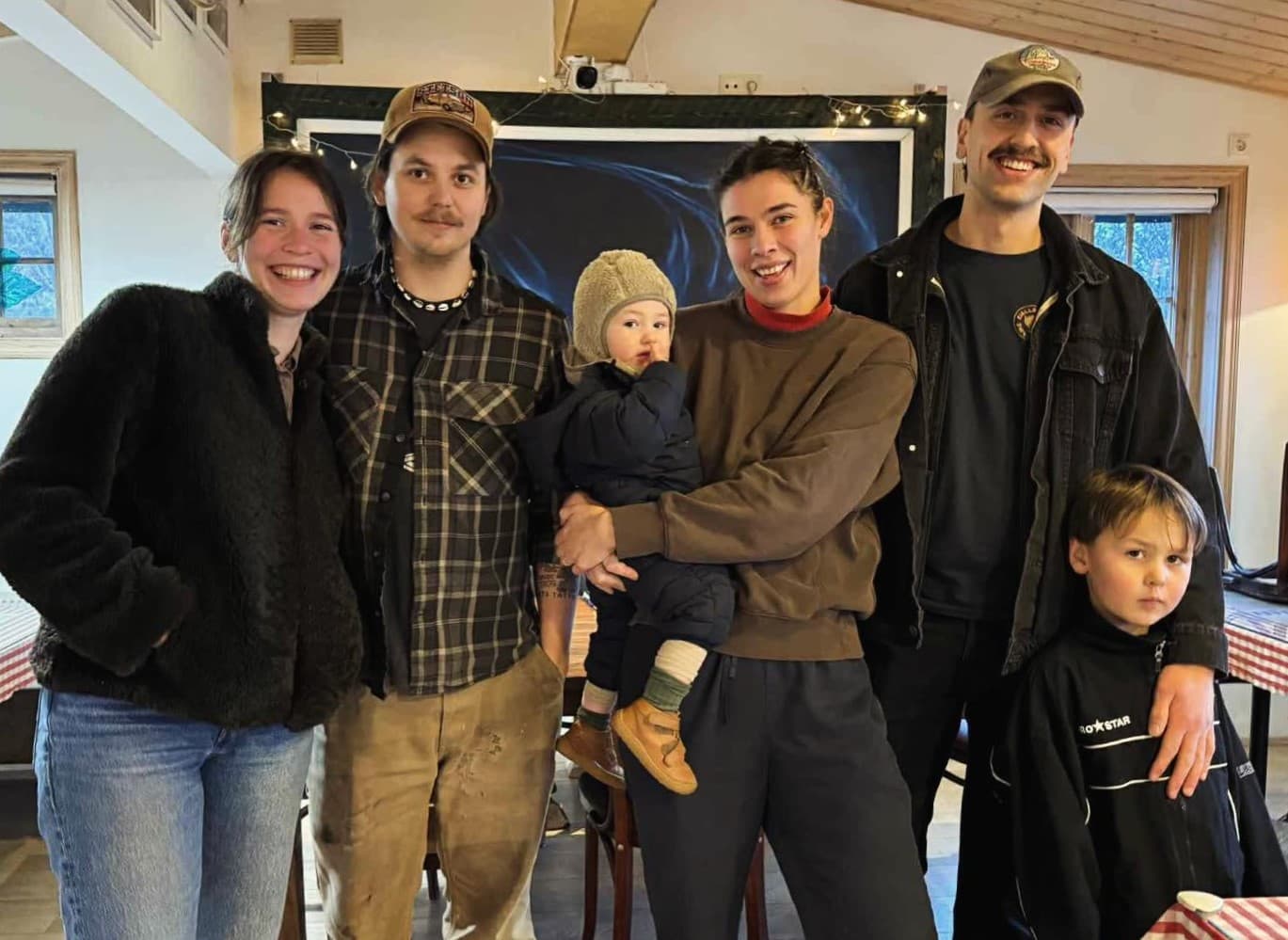 Framkvæmdir verða í fullum gangi á næstunni. Myndin er tekin á vettvangi. F.v: Agnes og Jóel og Rannveig og Páll ásamt sonum sínum, Hrafnkeli Einari og Illuga Erni Pálssonum.
