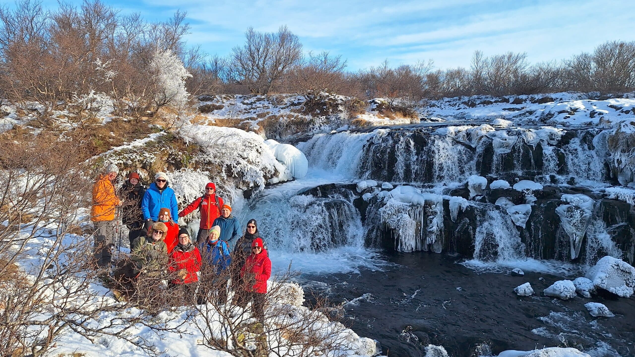 Í göngudagskrá Ferðafélags Borgarfjarðarhéraðs fyrir árið 2026 var tilkynnt um þá nýjung að auglýsa stuttar mánaðarlegar gönguferðir með skömmum fyrirvara seinni hluta vetrar, þegar veðurspá er hagstæð, undir heitinu „Gengið á gott veður.“ Fyrsta gönguferðin af þessu tagi var farin síðastliðinn laugardag og var upphafs staður hennar á Hraunhúseyrum, skammt vestan afleggjara að Gilsbakka í Hvítársíðu. Gengið var niður með Litla-Fljóti að Fljótsfossi og síðan niður gegnum Skógarhraun, sem er neðsti hluti Hallmundarhrauns og er alþakið birkiskógi. Í hrauninu eru upptök Lambeyrarkvíslar og var henni fylgt að ósi við Hvítá, áður en haldið var til baka upp með Hvítá, aftur upp gegnum hraunið og meðfram Strípstjörnum. Gangan tók um tvær klukkustundir og göngustjóri var Sigurður Magnússon frá Gilsbakka. Veðrið var eins og það gerist fallegast að vetri til, kyrrt og bjart og nokkurra stiga frost. Alls tóku tólf manns og einn ferfætlingur þátt í göngunni. Fleiri svipaðar gönguferðir verða væntanlega auglýstar á næstu vikum, með stuttum fyrirvara.