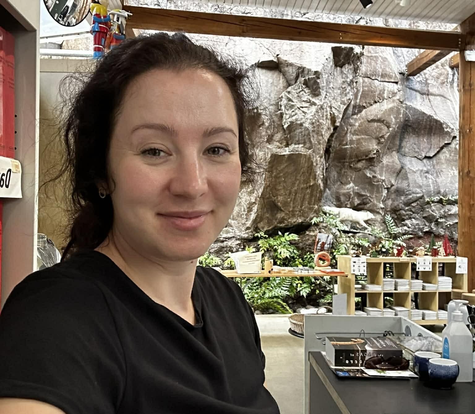 Daria Pericot er hér við störf á Landnámssetrinu þar sem hún þjónar til borðs.