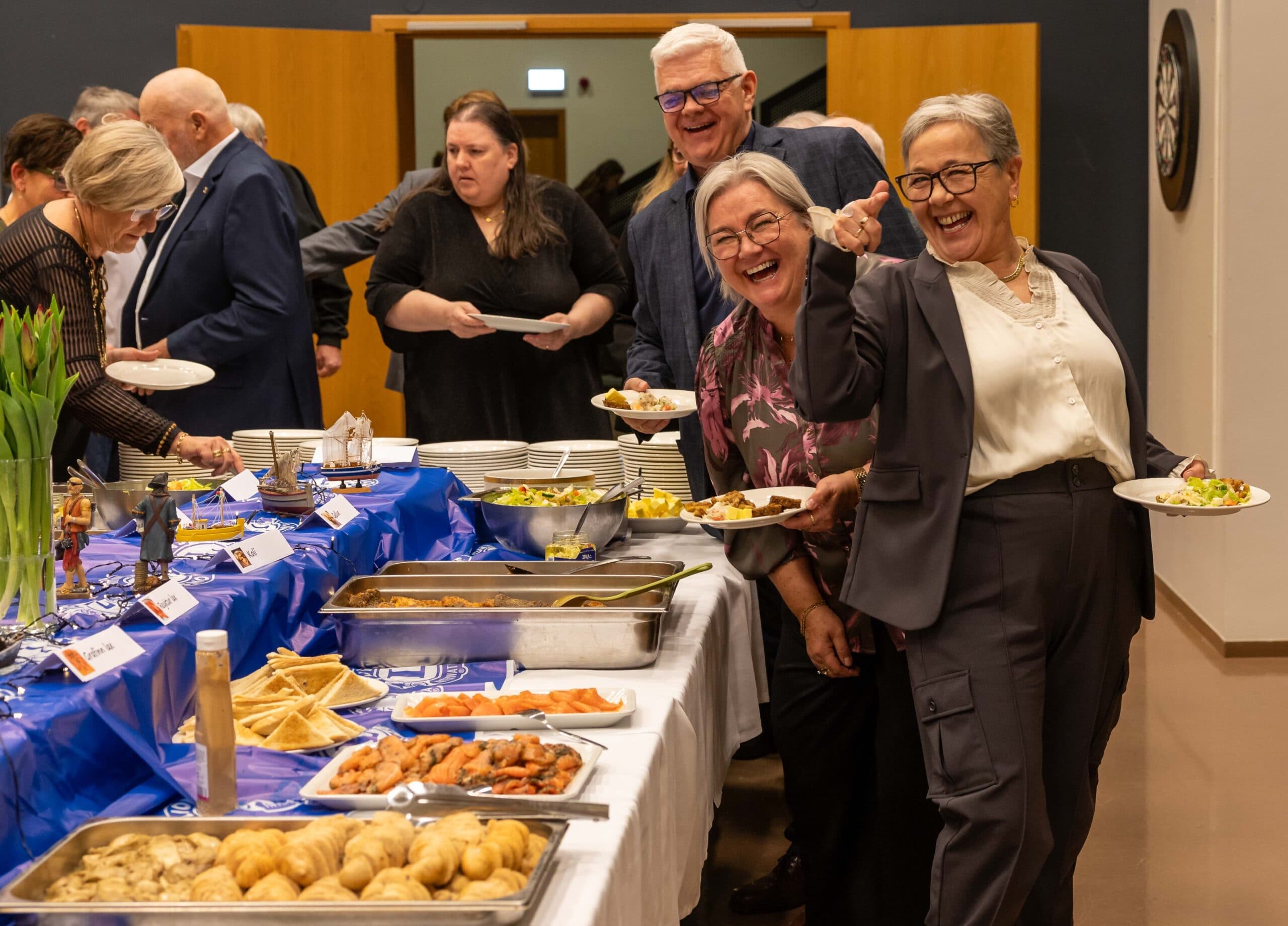 Þau María Magdalena Guðmundsdóttir, Drífa Óttarsdóttir og Magnús Stefánsson voru í einstaklega góðum gír enda á fyrsta borðinu sem var hleypt að kræsingunum. Texti og myndir: tfk