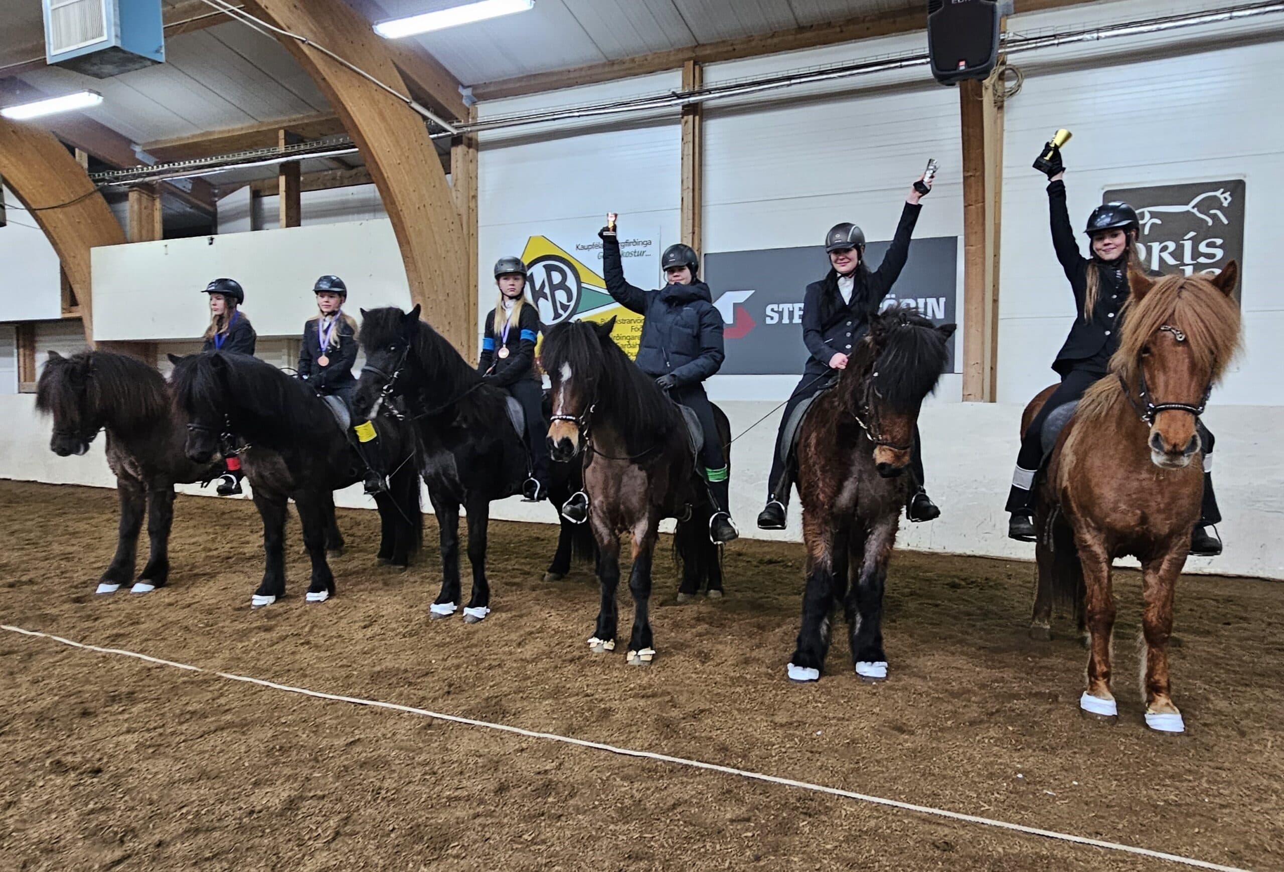 Annað mótið í KB mótaröðinni í hestaíþróttum var haldið í gær. Veðrið hélt áfram að stríða mótshöldurum en mótið átti að vera á laugardeginum en því þurfti að fresta um einn dag vegna slæms veðurs. Þátttaka var engu að síður góð á mótinu og var sérstaklega gaman að sjá hvað skráning var mikil í barnaflokki og hvað krakkarnir voru í senn duglegir og vel ríðandi. Mótið er bæði einstaklings- og liðakeppni sem býr til skemmtilega stemningu með smá dass af keppnisskapi. Spennandi verður að sjá hvernig lokamótið fer en mjótt er á munum bæði í liða- og einstaklingskeppninni.