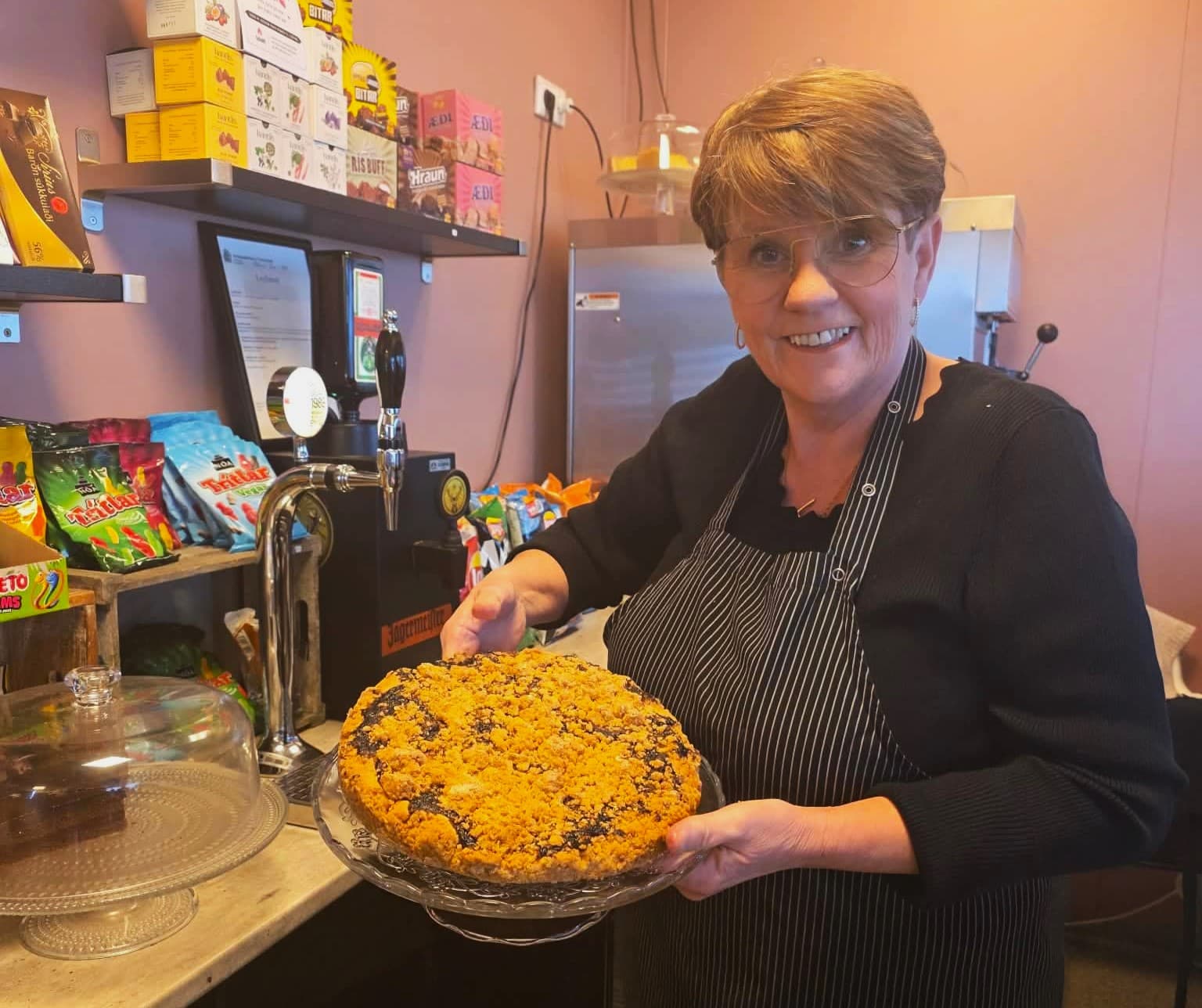 Helga Magnea segir að ekki í sínum villtustu draumum hafi hún séð fyrir sér lífið eins og það þróaðist eftir að hún fór út í reksturinn á Arnarstapa. Hér er hún með nýbakaða hjónabandssælu. Ljósm. úr einkasafni. Texti: Þóra Kristín Ásgeirsdóttir