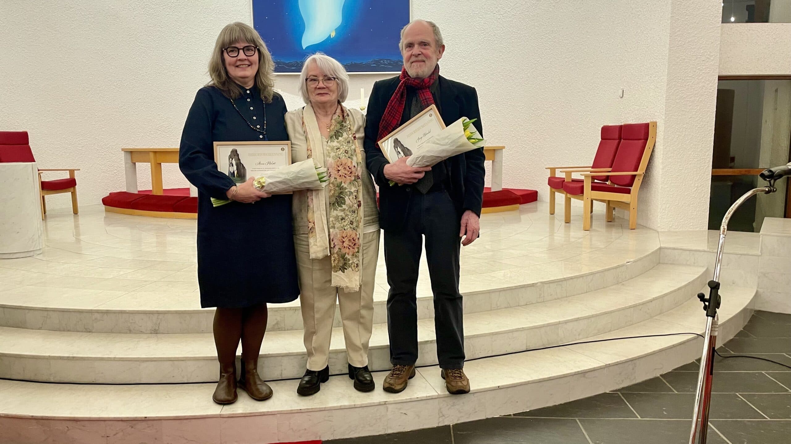 Heiðursverðlaunahafarnir Anna Melsteð og Jósep Blöndal ásamt Grétu Sigurðardóttur skipuleggjanda hátíðarinnar. Ljósm. re