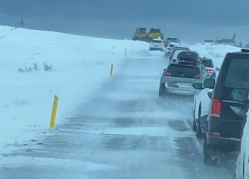 En veðrið hafði víðar áhrif og var björgunarsveitin Stefán á Mývatni boðuð út til að aðstoða að minnsta kosti sjö bíla sem sátu fastir við Biskupsháls, um 50 km. austan Mývatns.
